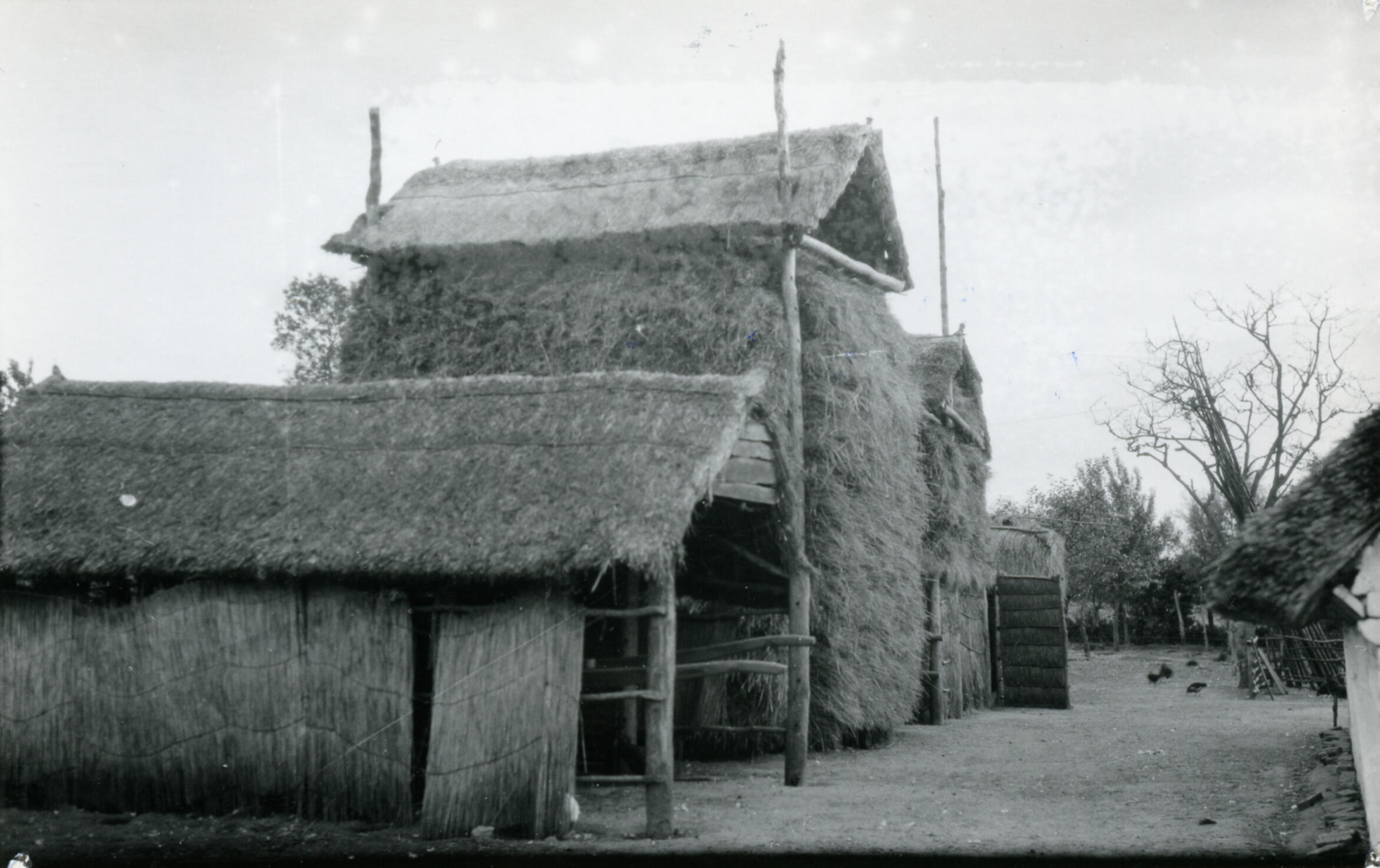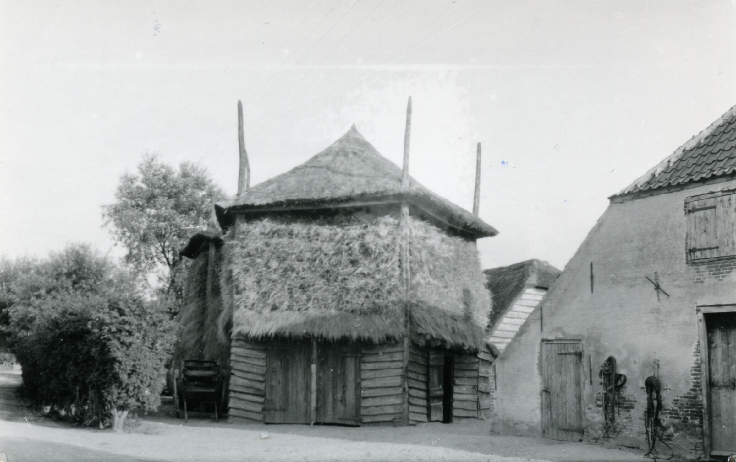 Schuur en hooibergen, Achterberg, 1939 (zwart-wit foto)