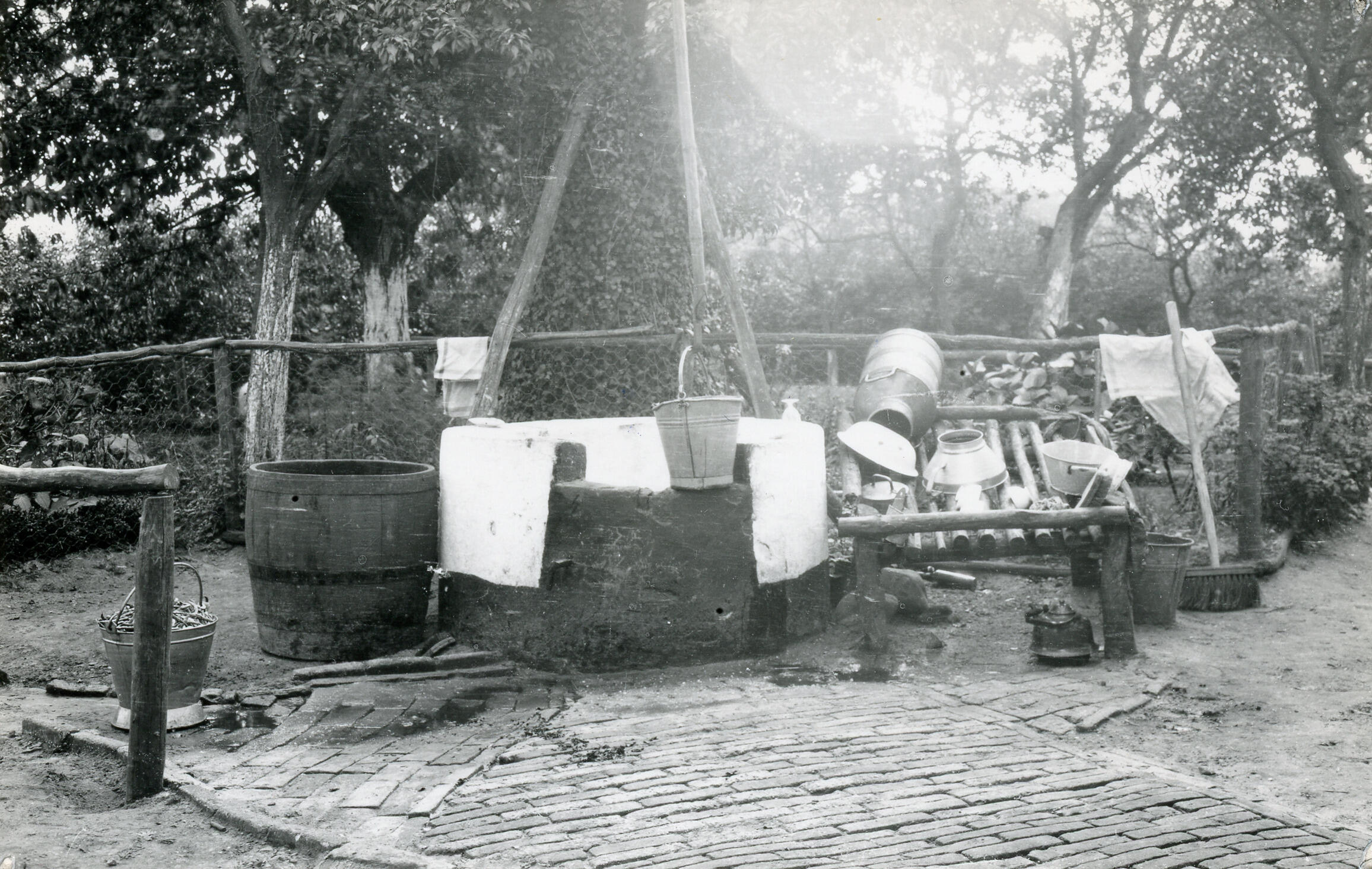 Put en spoelplaats, Achterberg, 1939 (zwart-wit foto)
