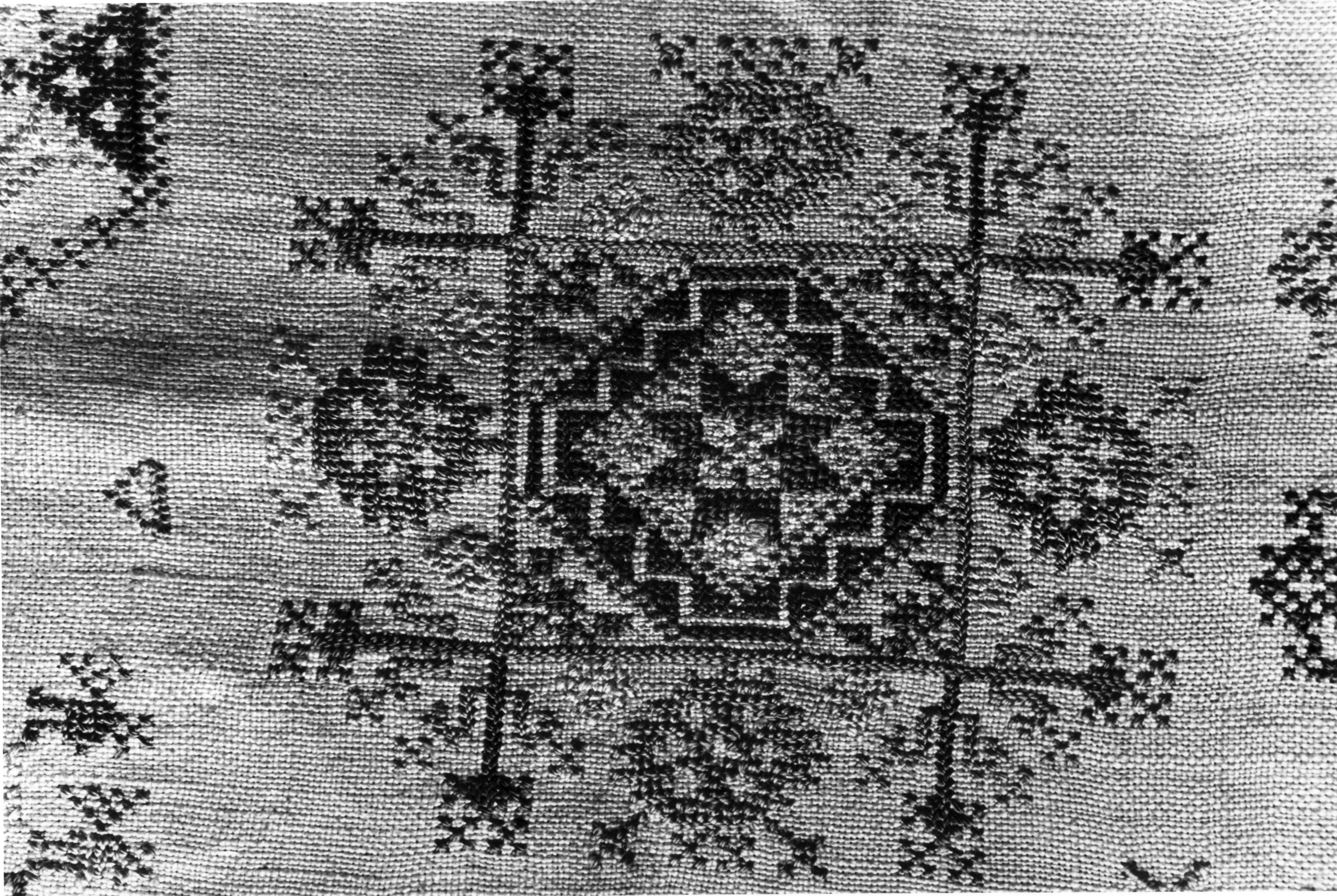 Detail van een merklap, Marken, 1943 (zwart-wit foto)