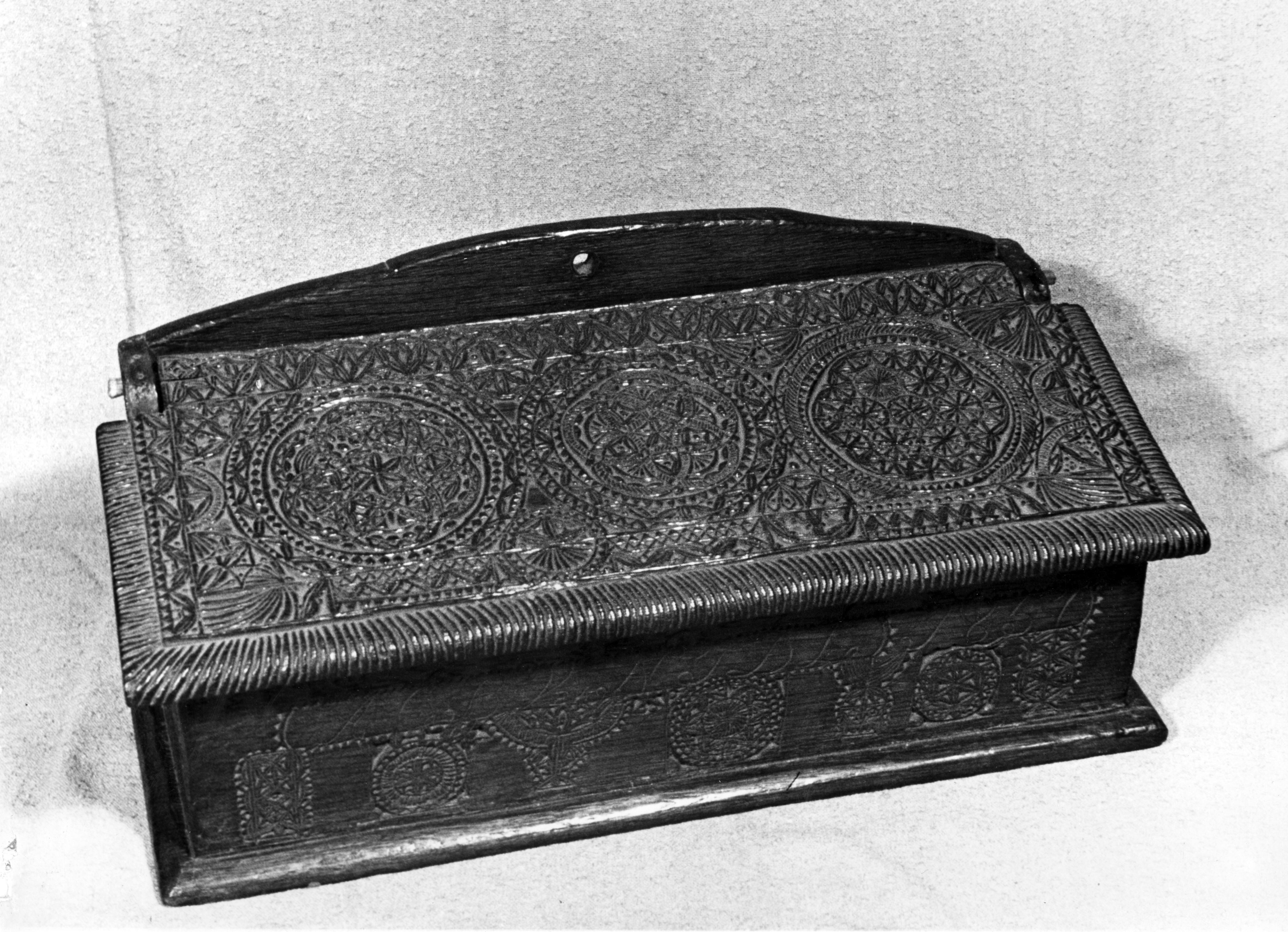 Boetkistje met kerfsnede, Marken, 1943 (zwart-wit foto)