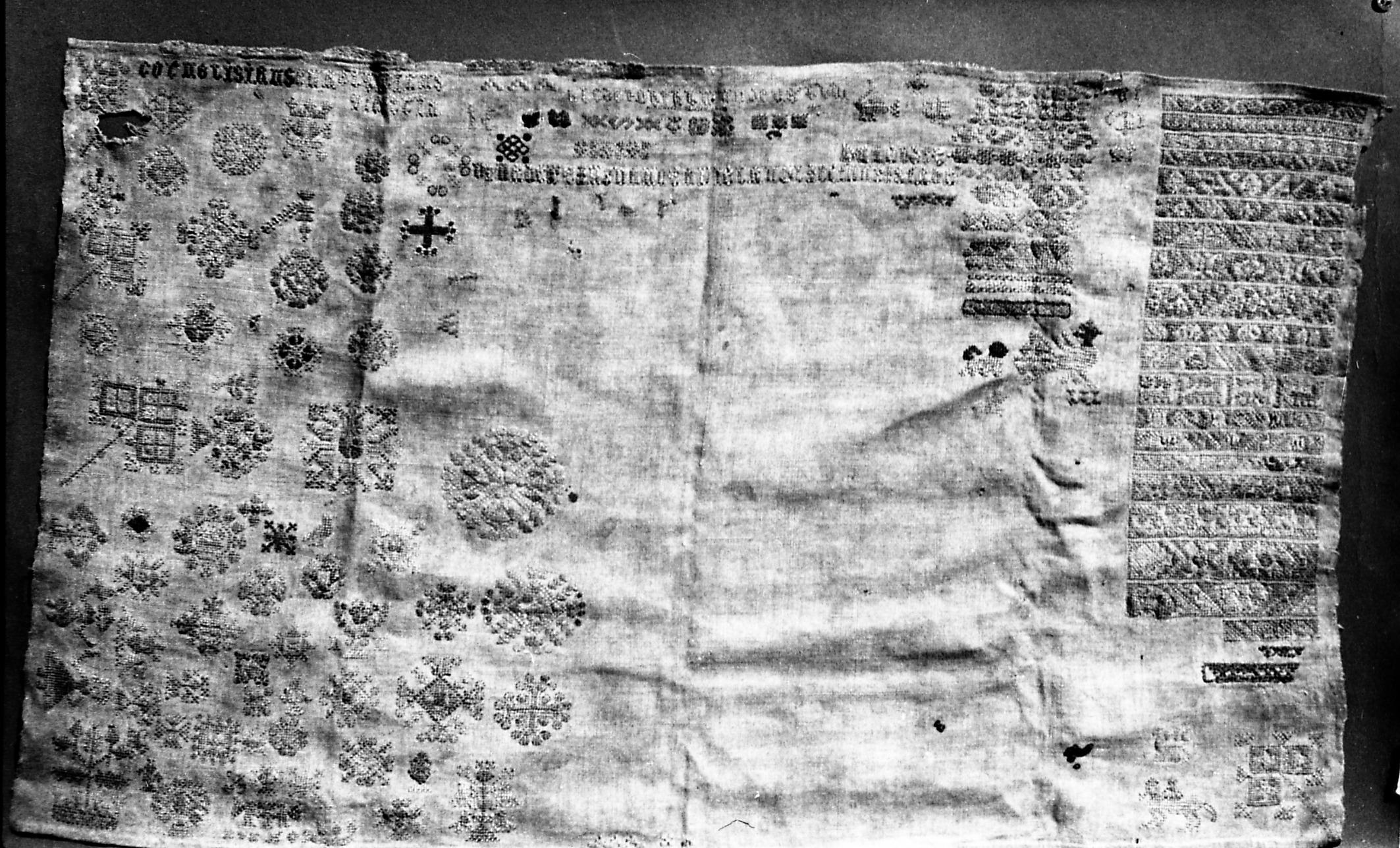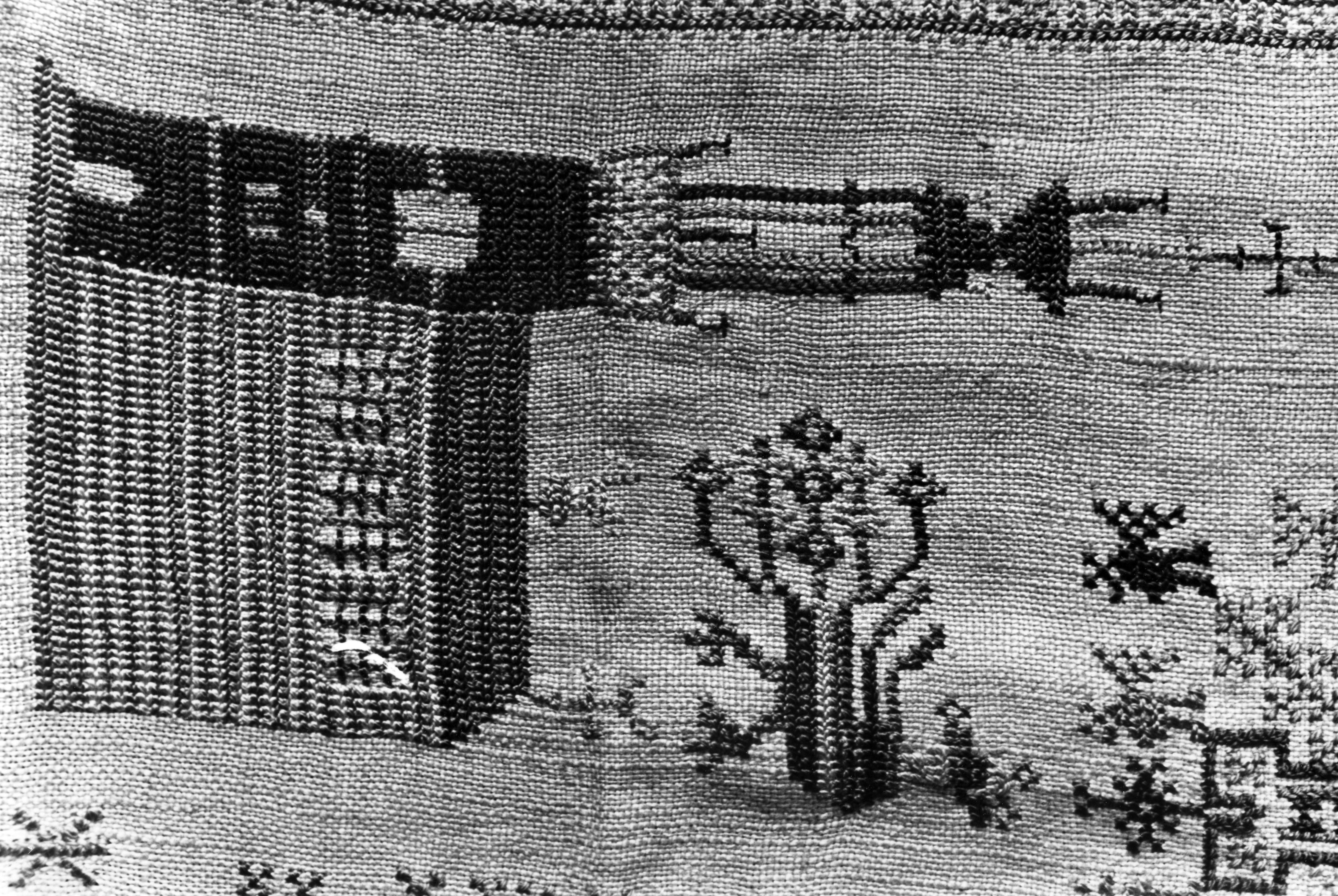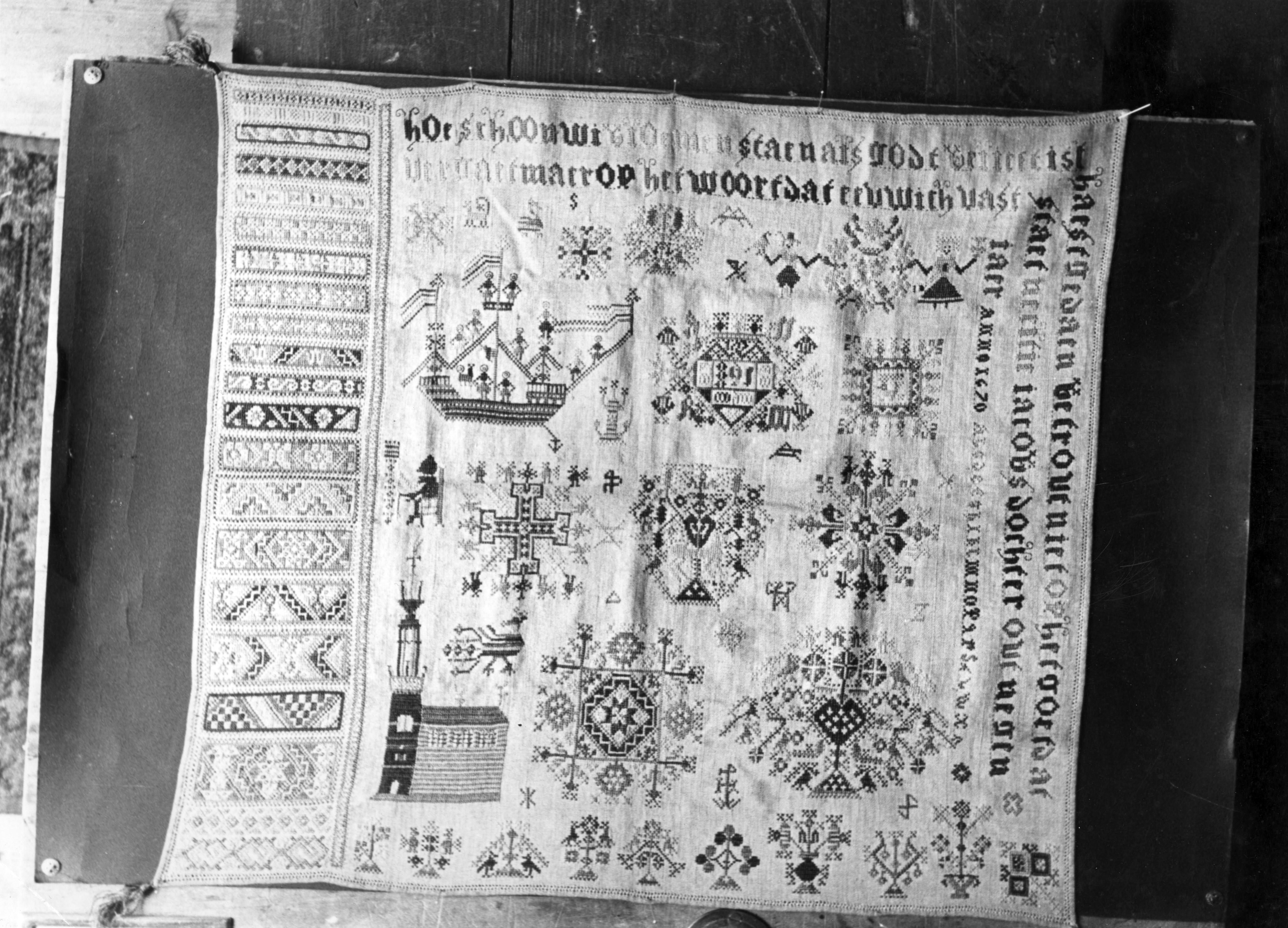Detail van een merklap uit 1670, Marken, 1943 (zwart...