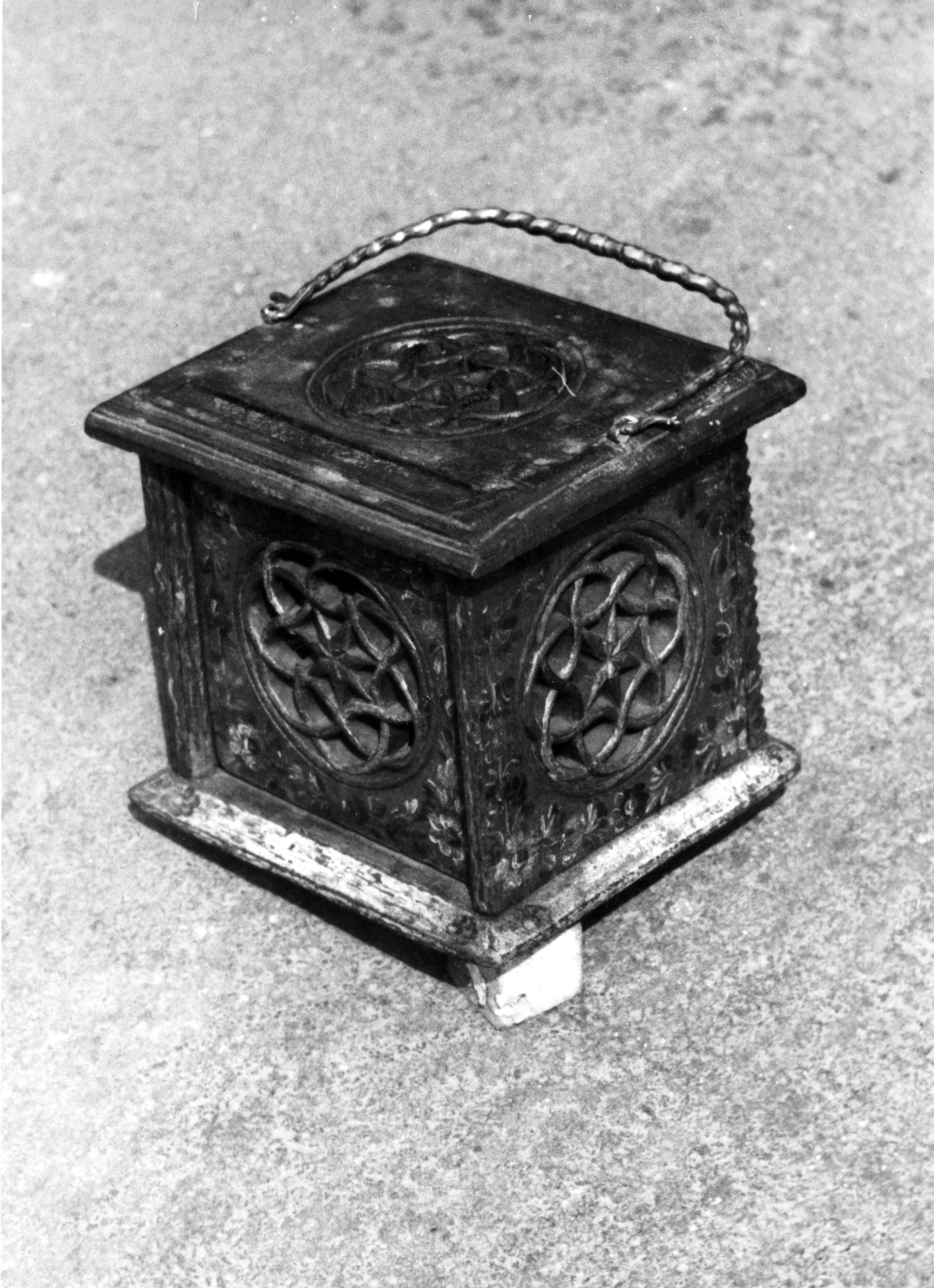 Houten schooltas uit Molkwerum, 1944 (zwart-wit foto)