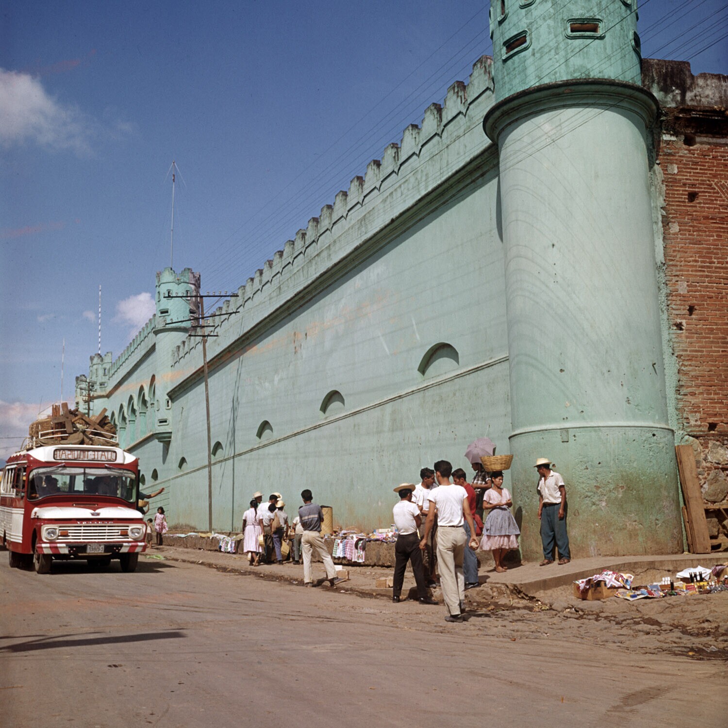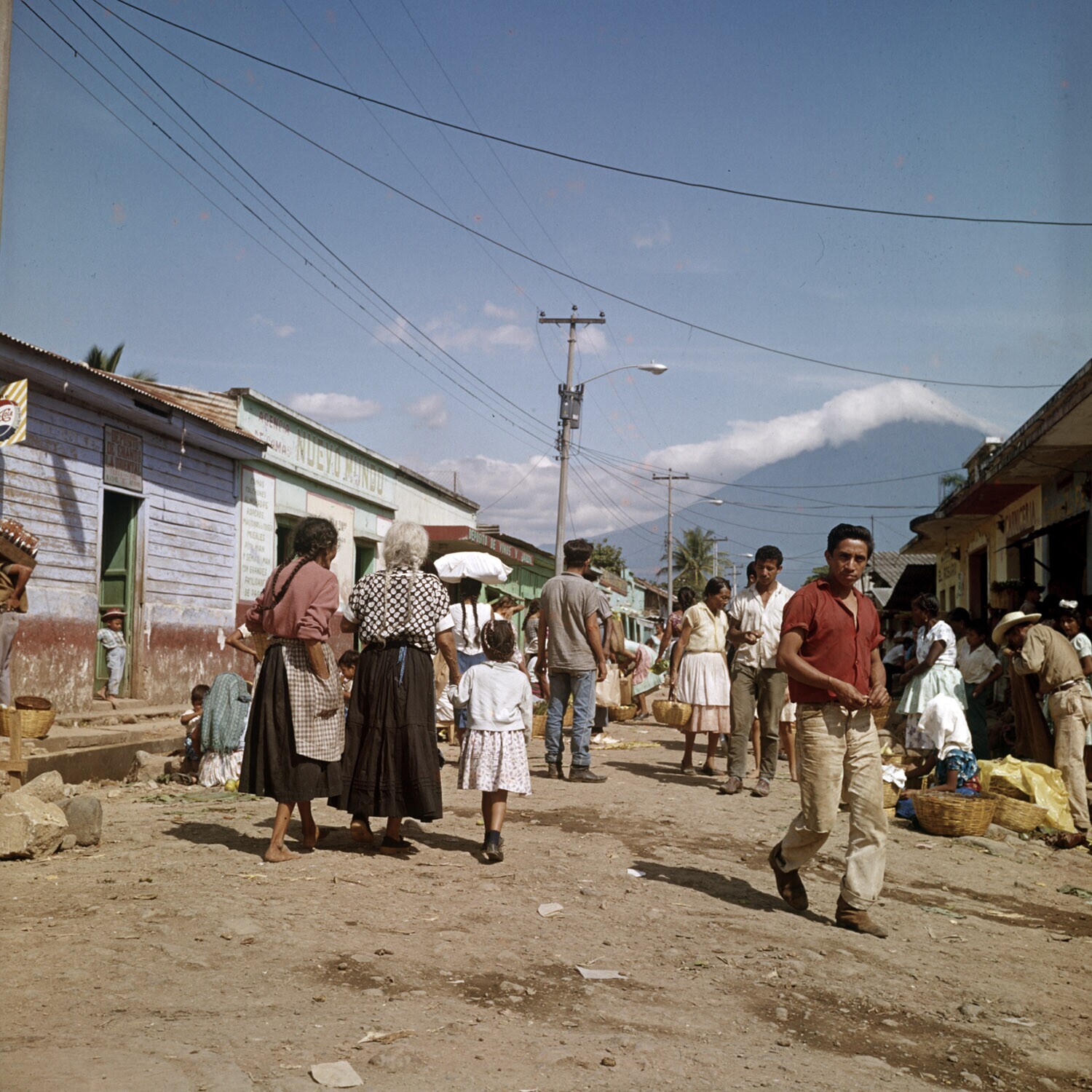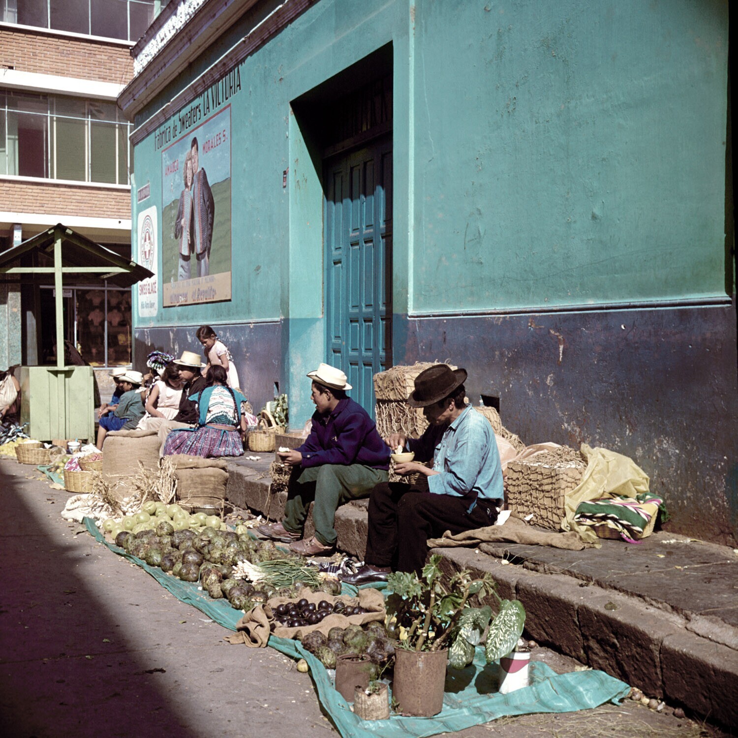 Vrouwen met manden op het hoofd en andere verkopers ...