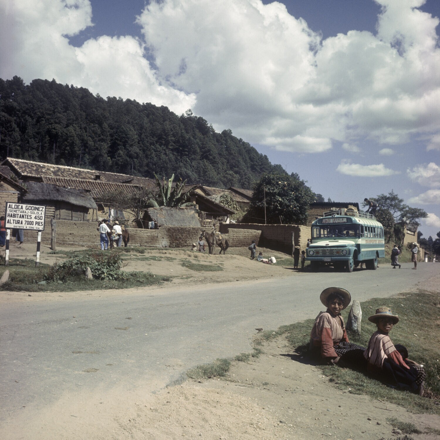 Weg met autobus in een bergdorp bij het lago de Atit...