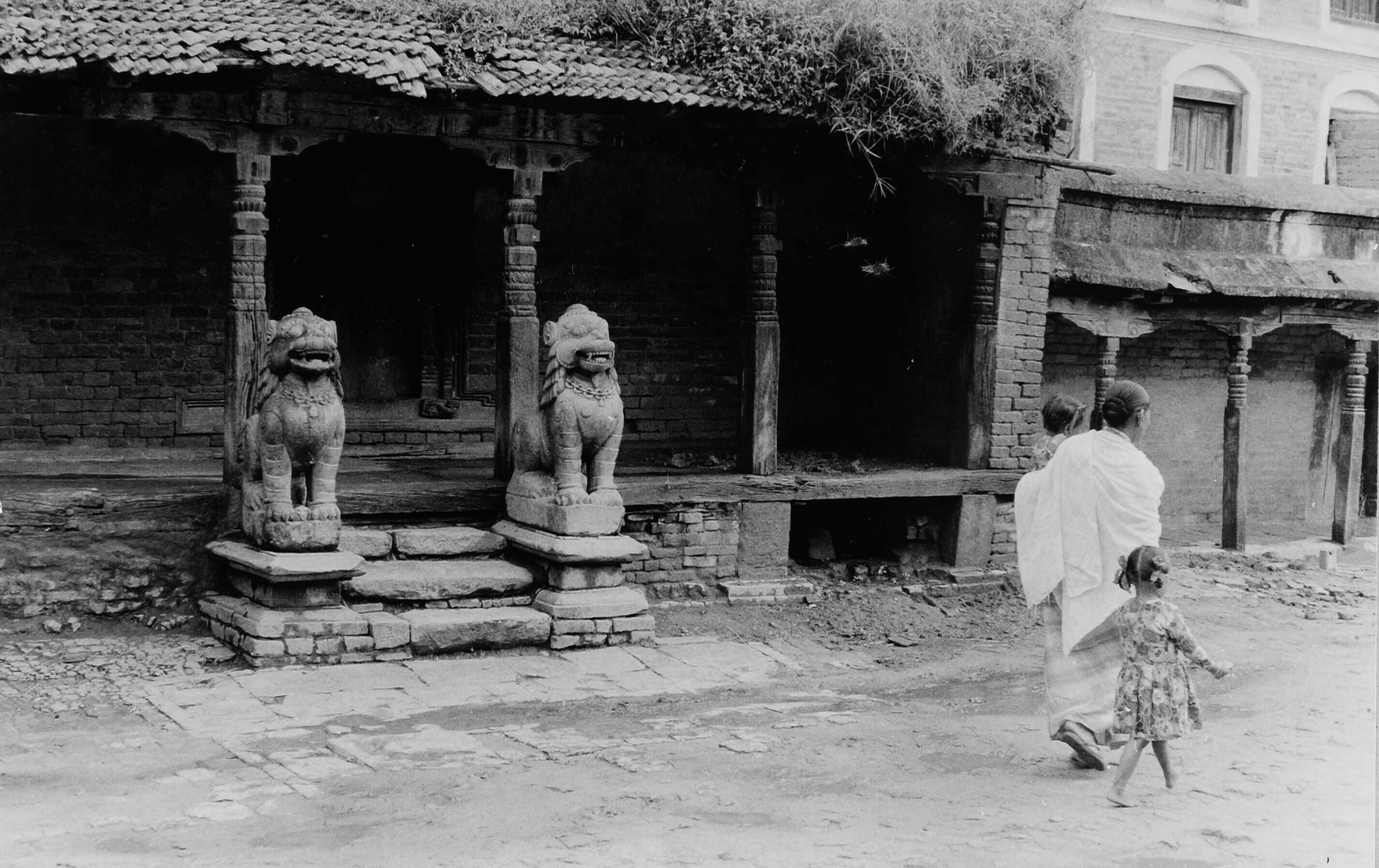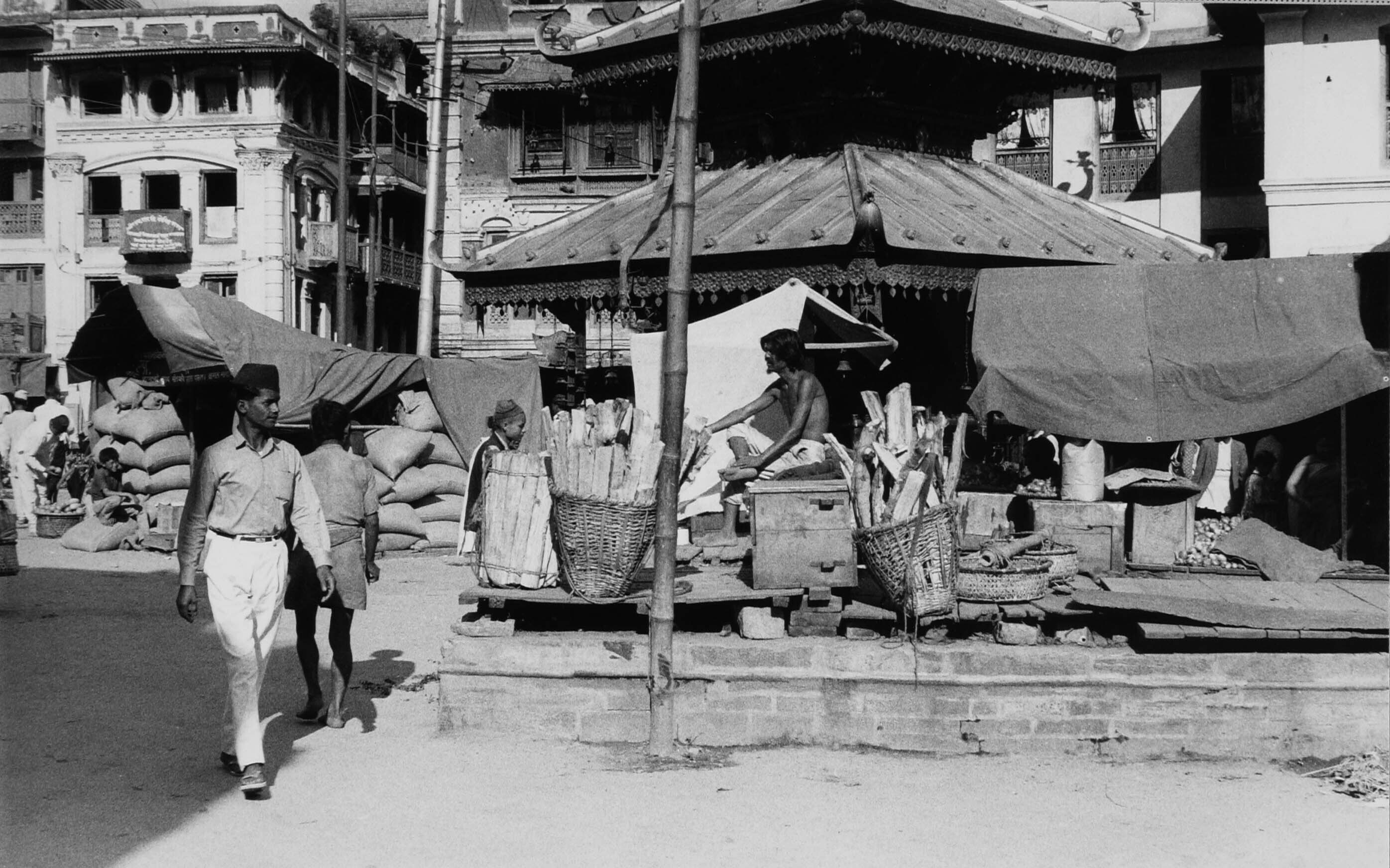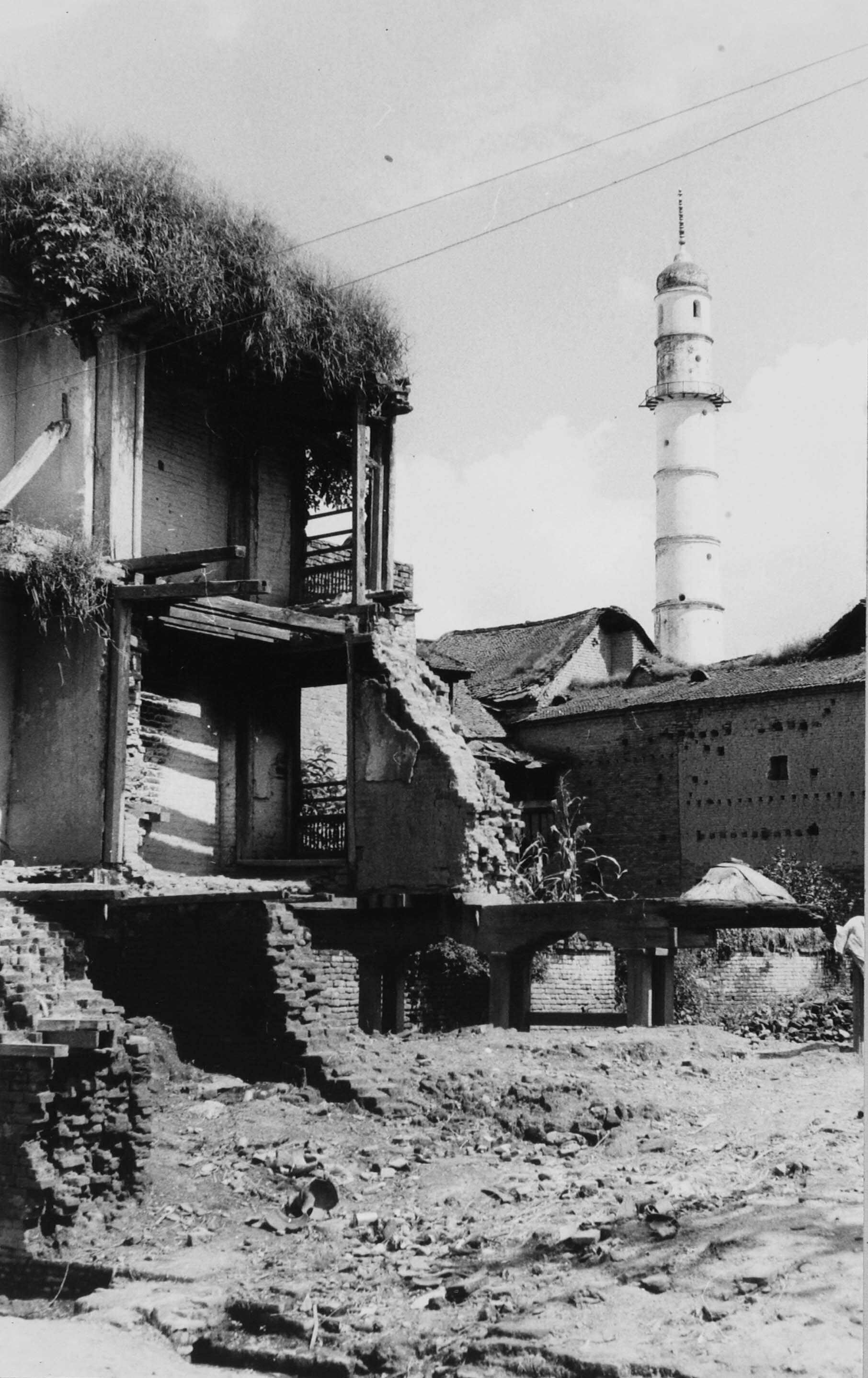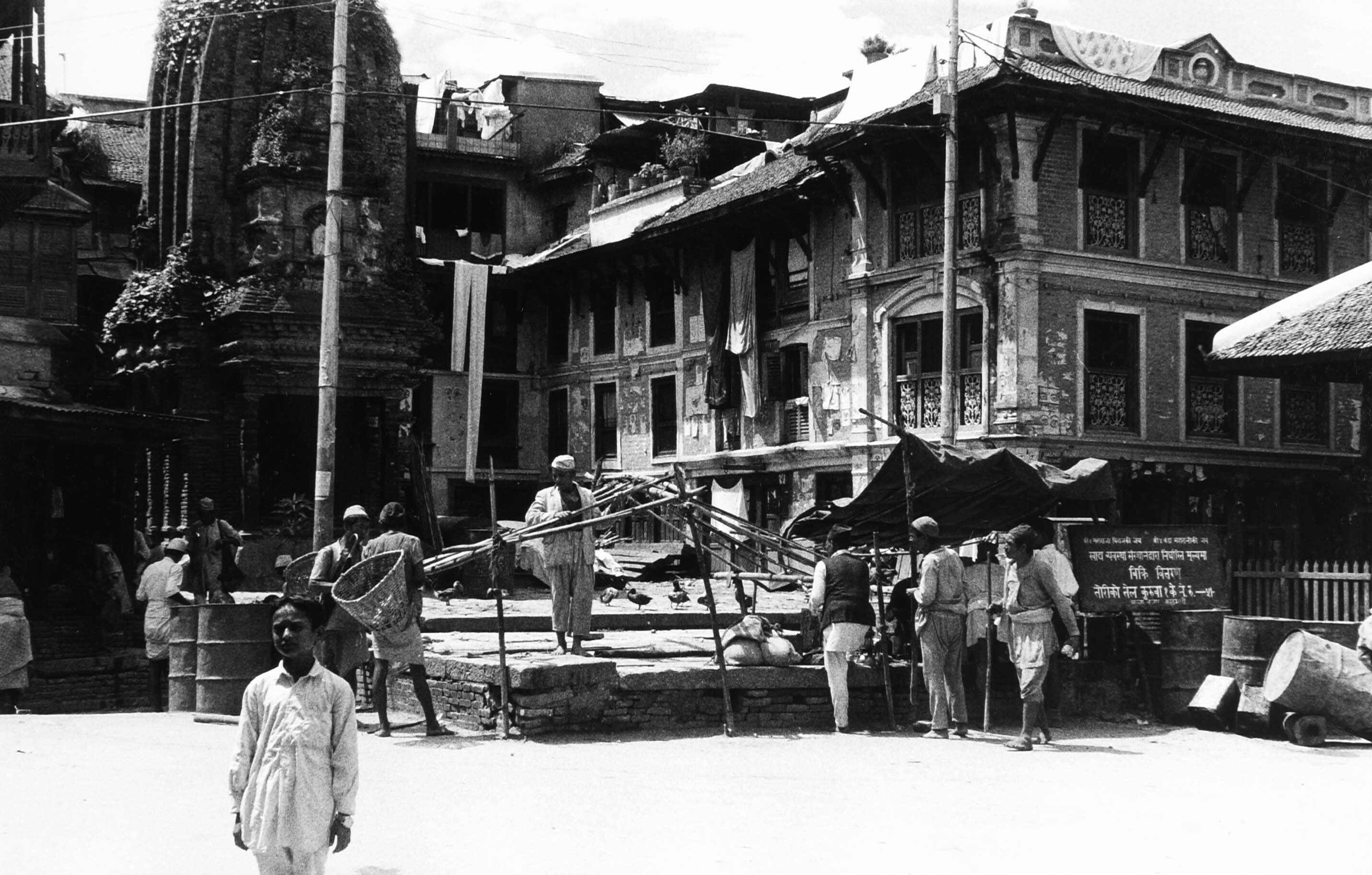 Bouwvallen met Bhimsen Toren op de achtergrond
