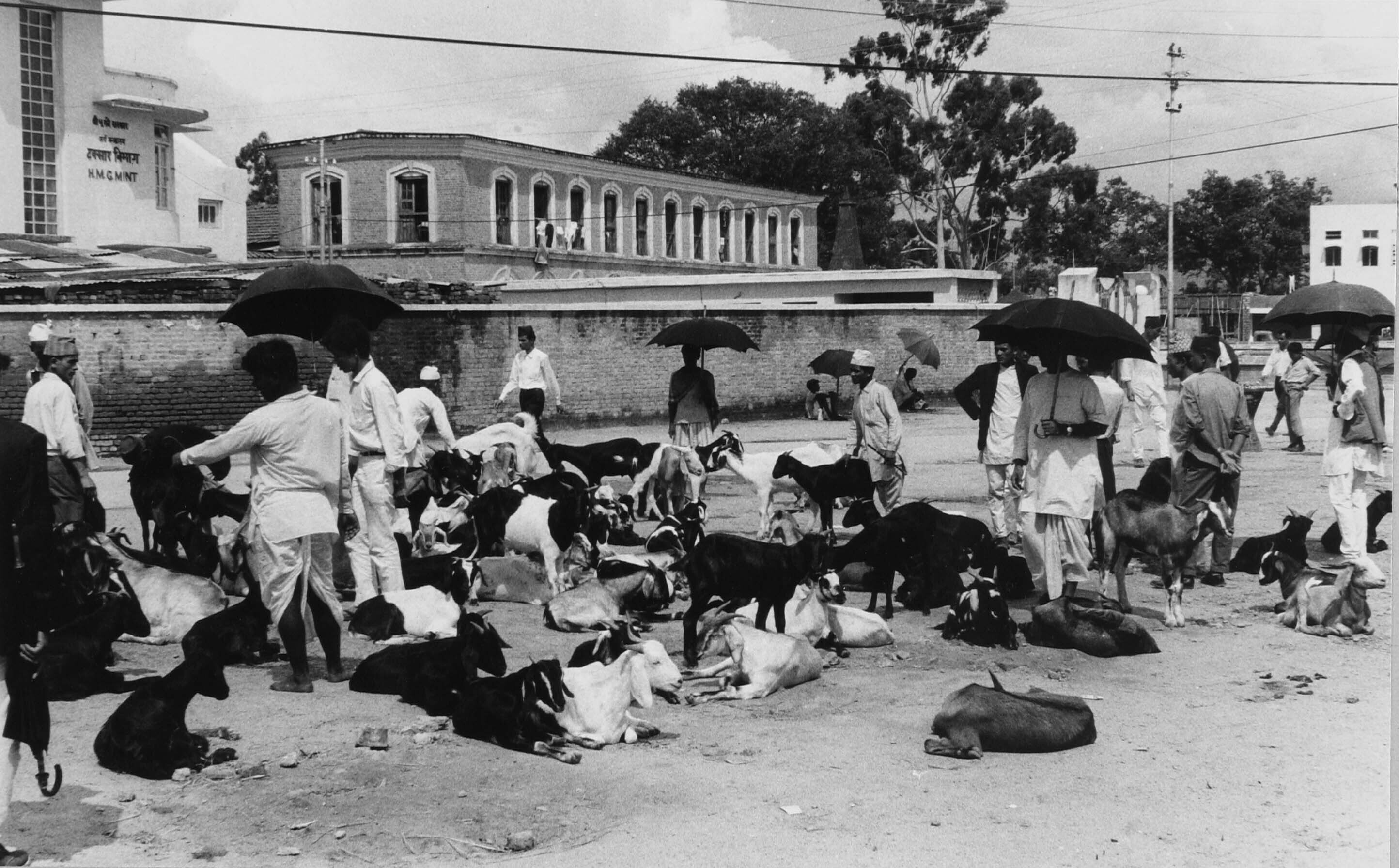 Geitenmarkt met op de achtergrond het gebouw van de ...