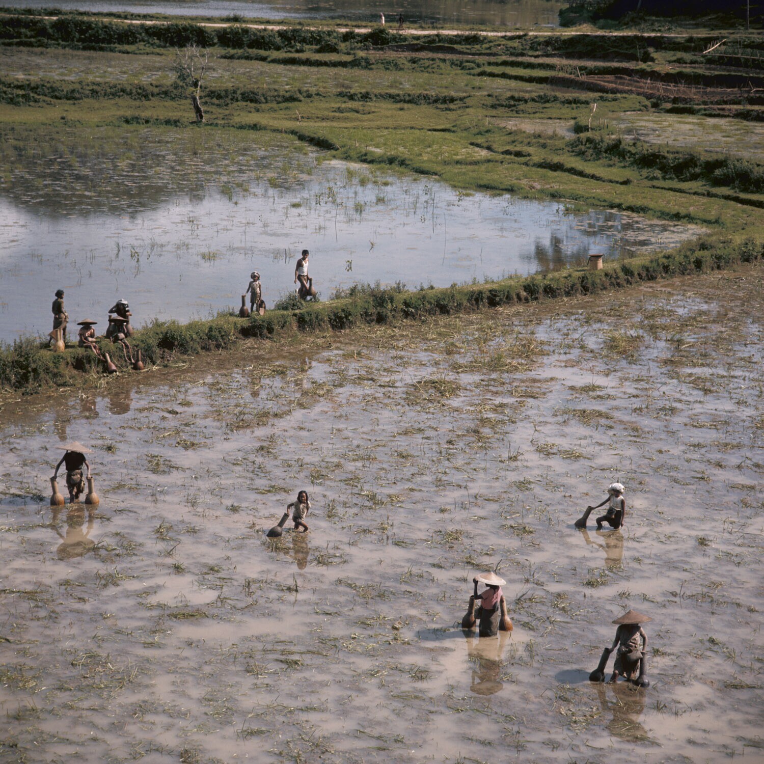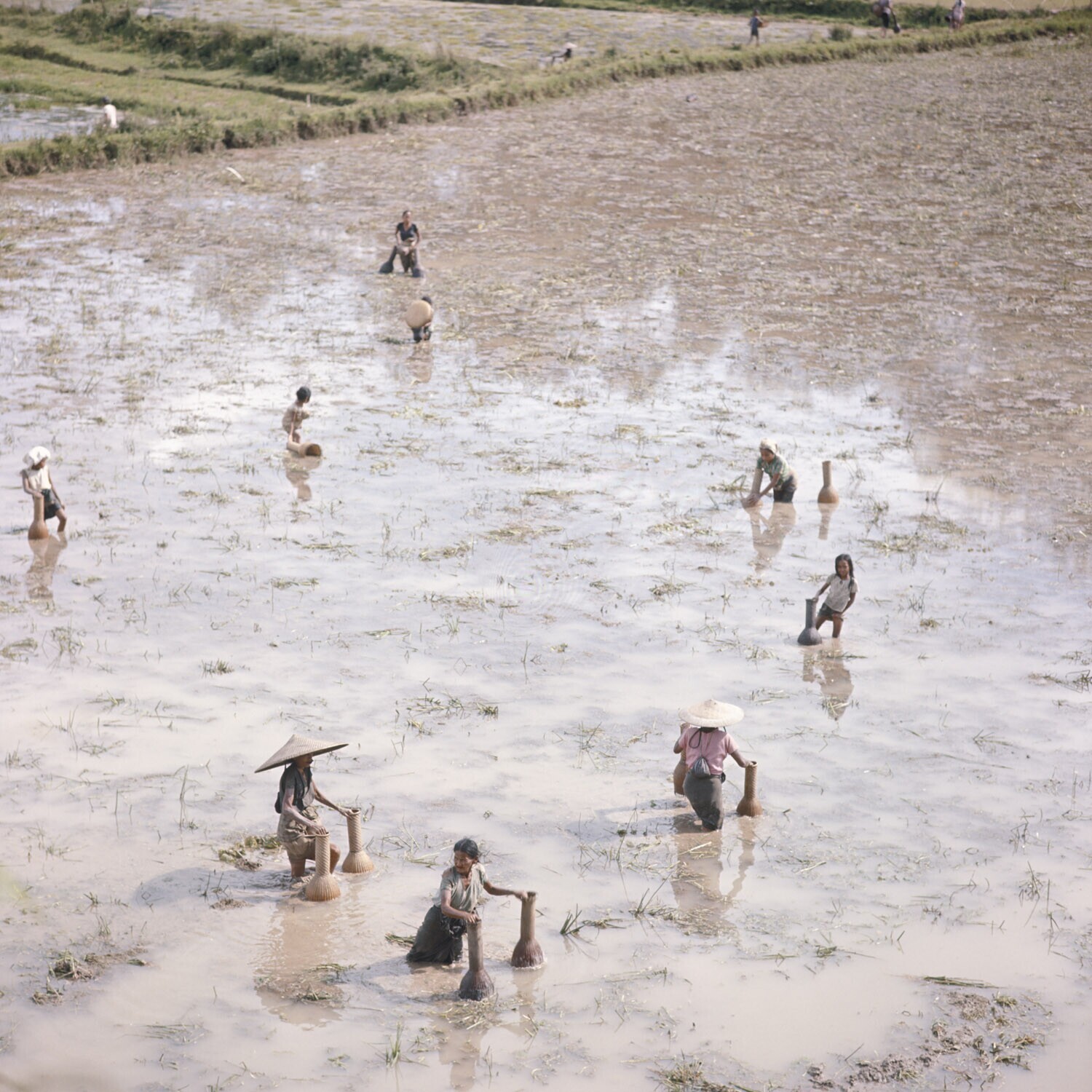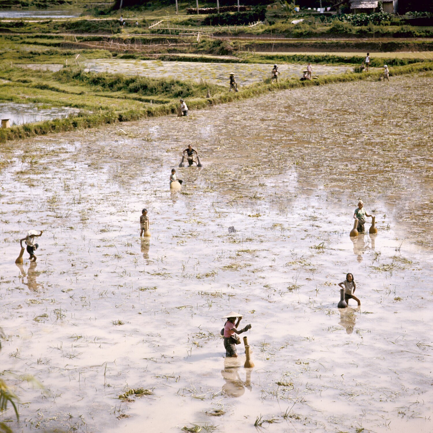 Visvangst in de sawah bij Panganan, Tana Toradja, Su...