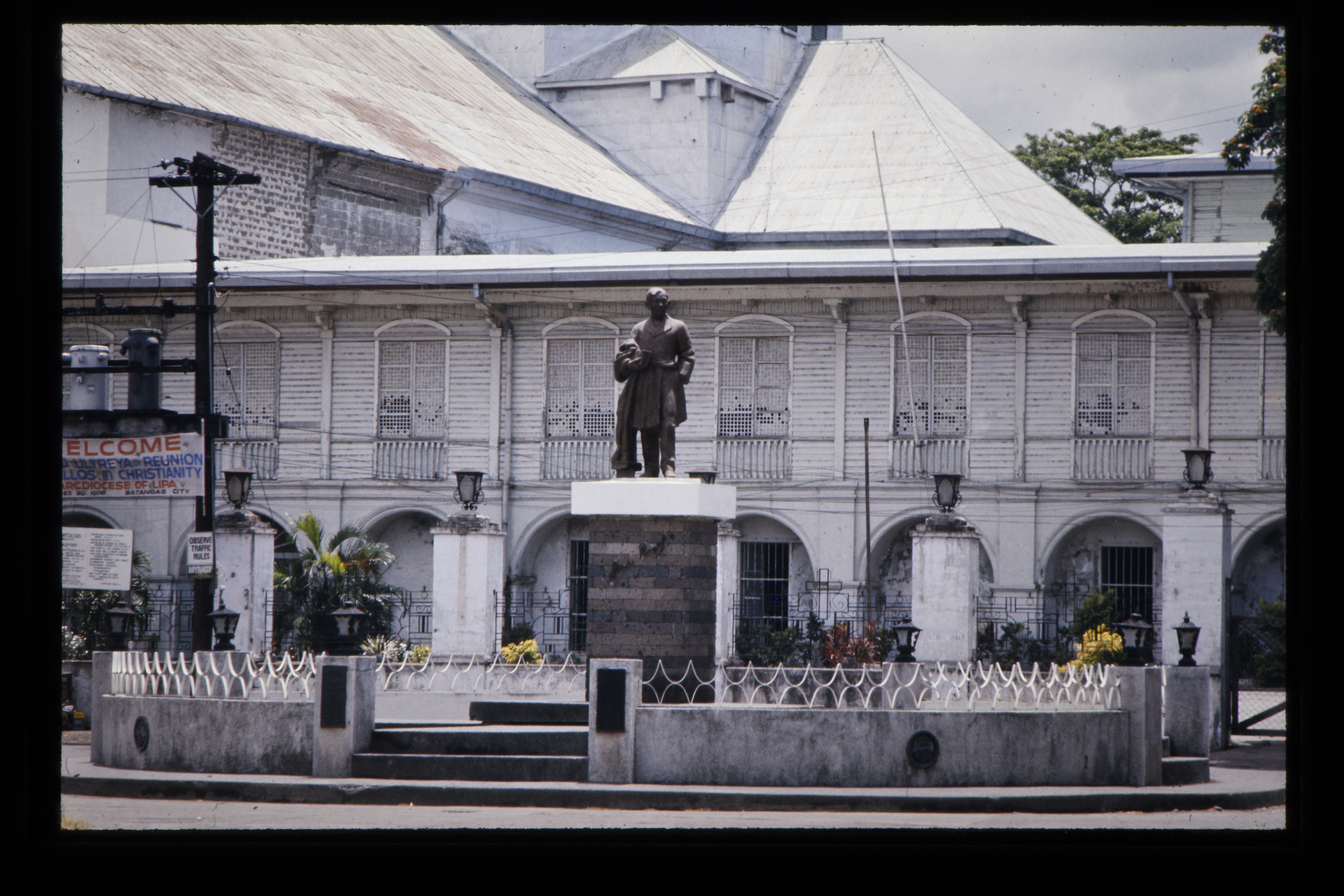 'Monument van de vrijheidsheld Rizal voor de kerk in...