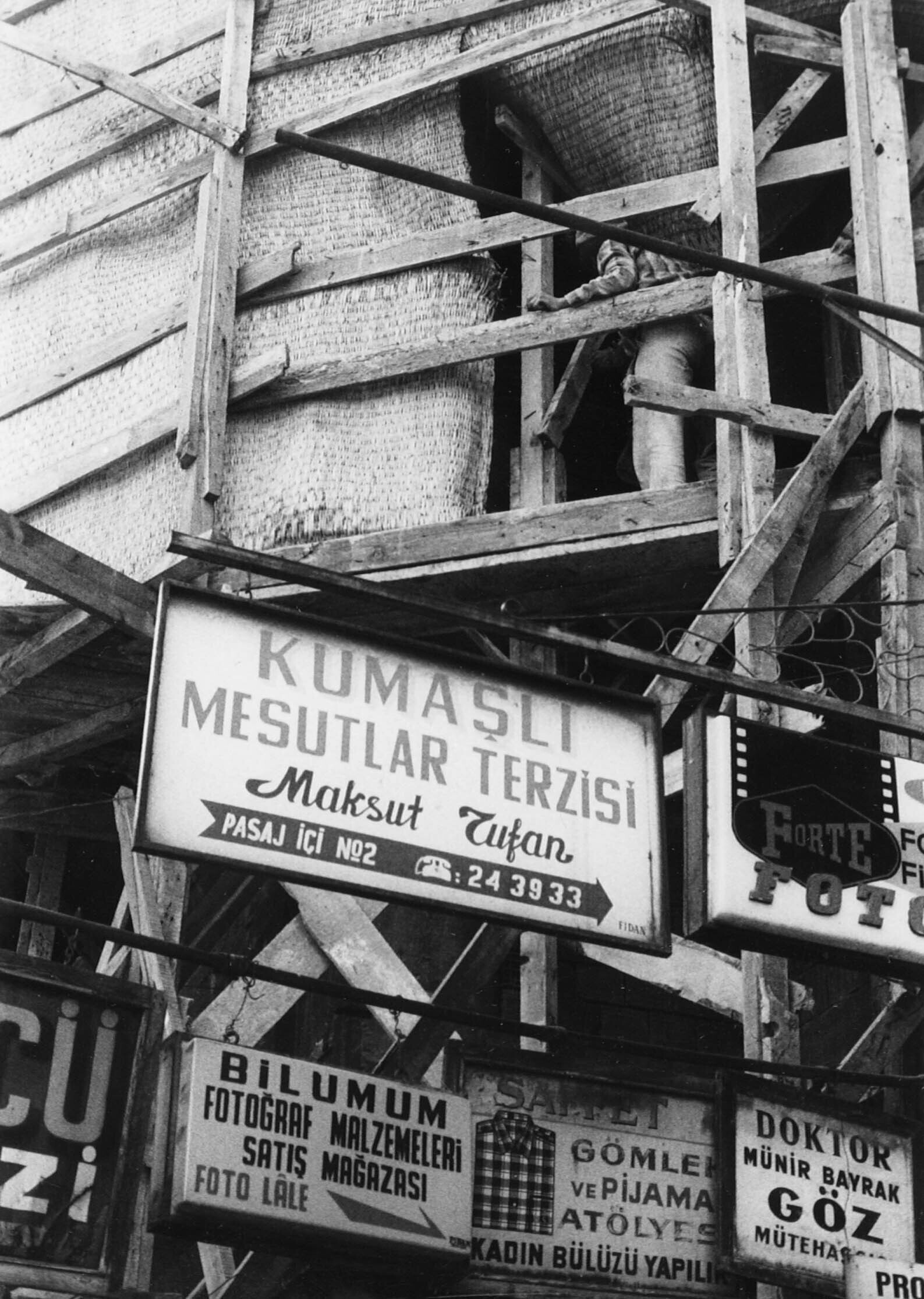 Reclameborden bij een bouwstellage