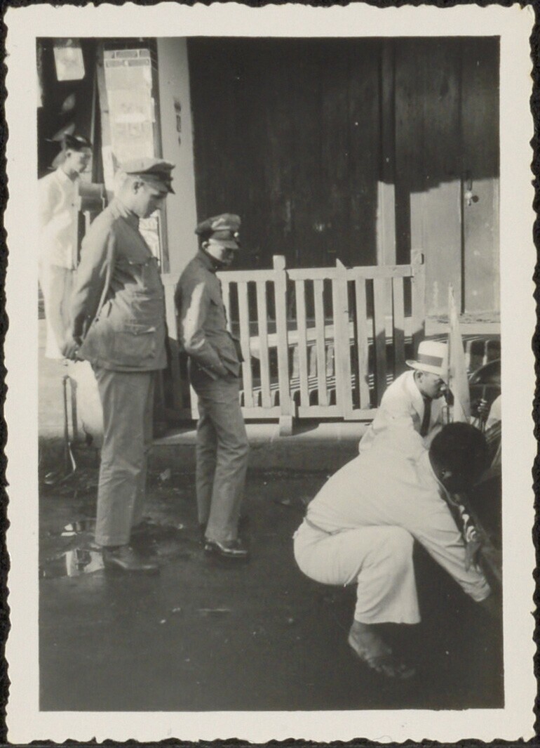 Toekijkende militairen of politieagenten (?)