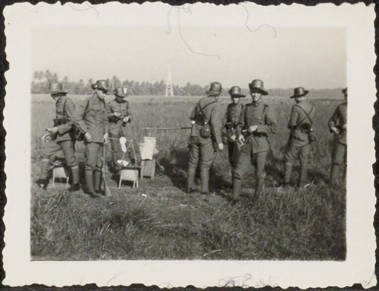 Veldpolitie of militairen (?) tijdens schietoefeningen