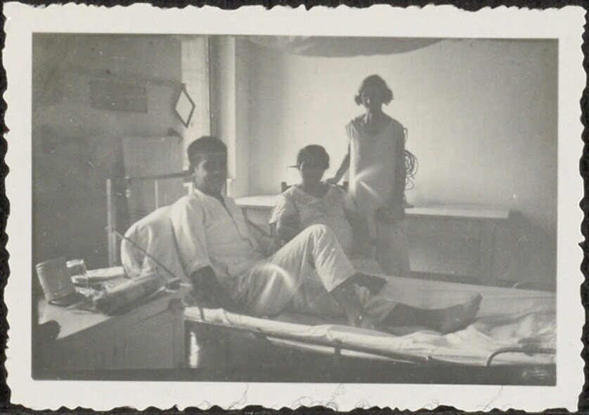 Man met bezoek op slaapzaal