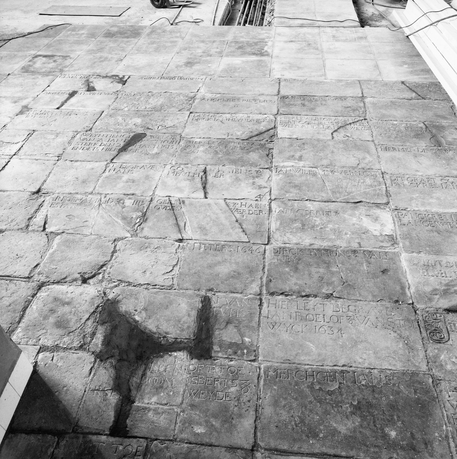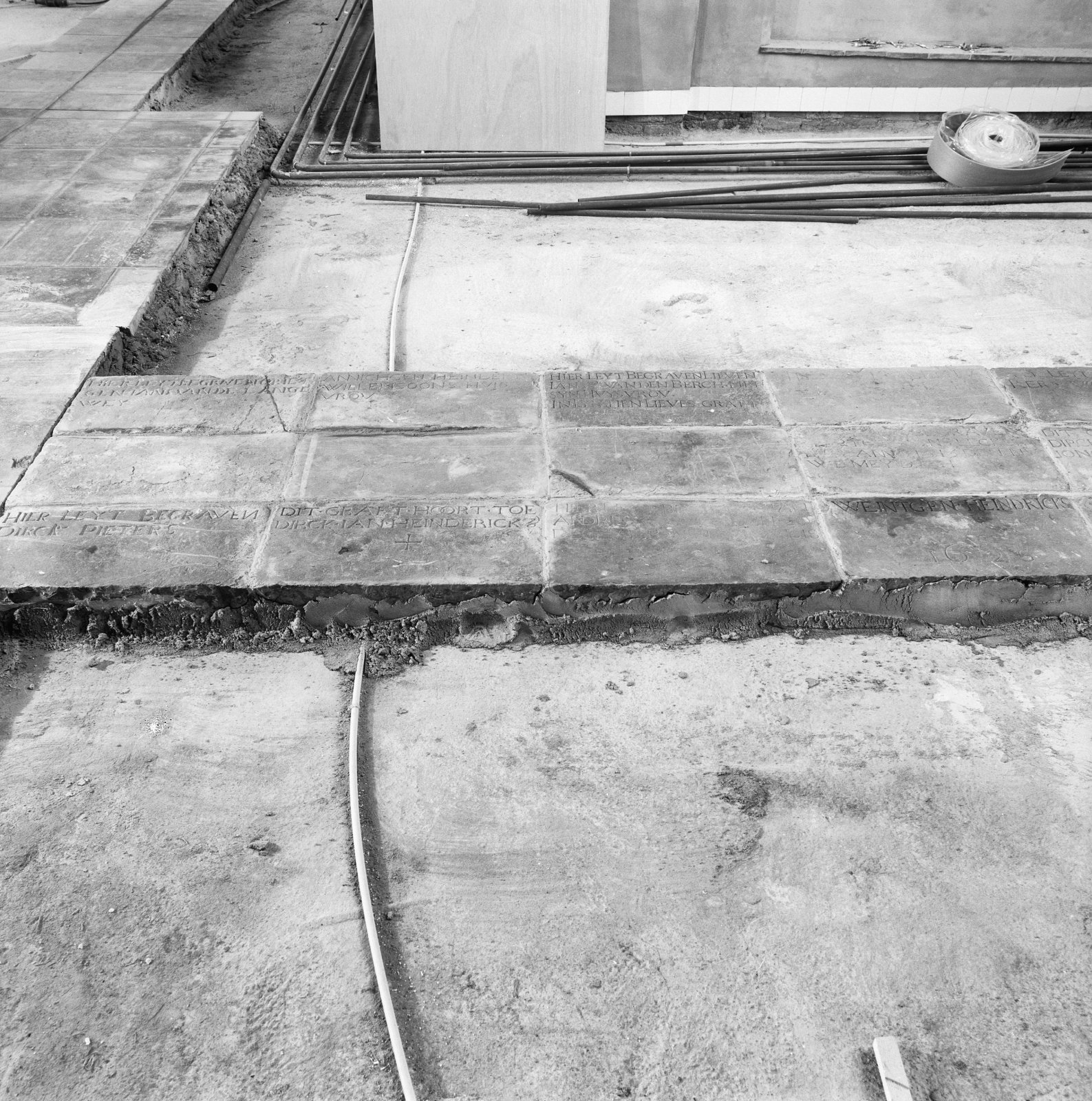 Interieur, grafzerken vloer in dooptuin