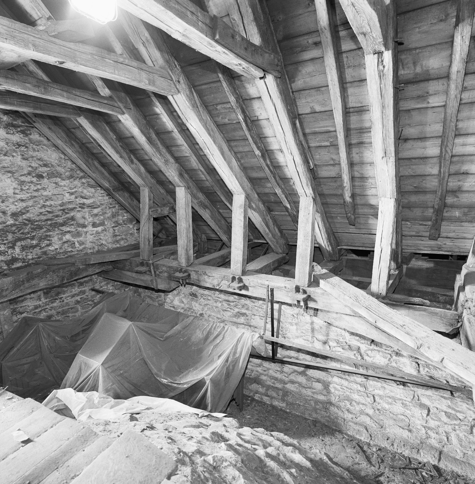 Interieur, Hervormde kerk in de steigers tijdens res...