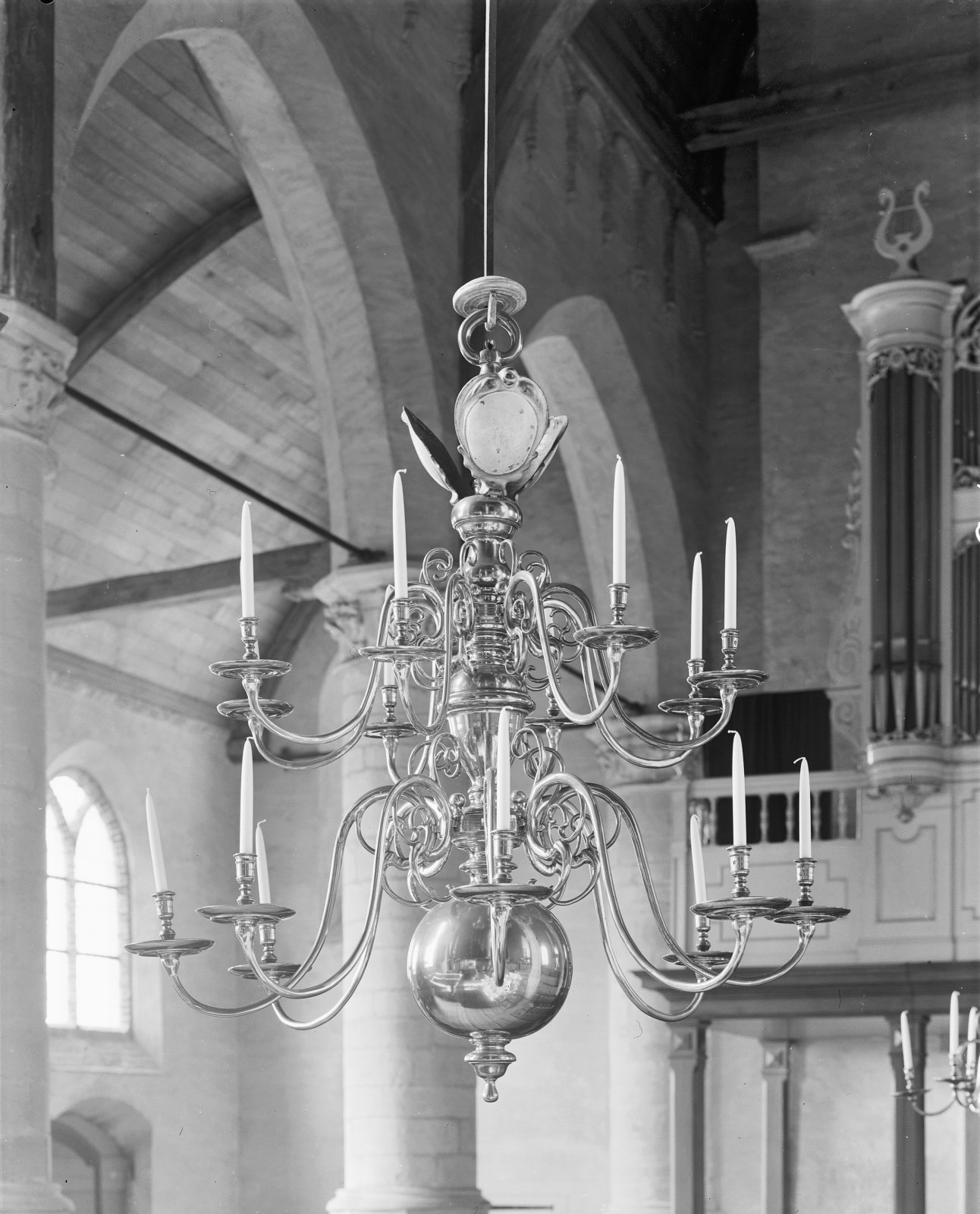 Interieur, koperen kaarsenkroon