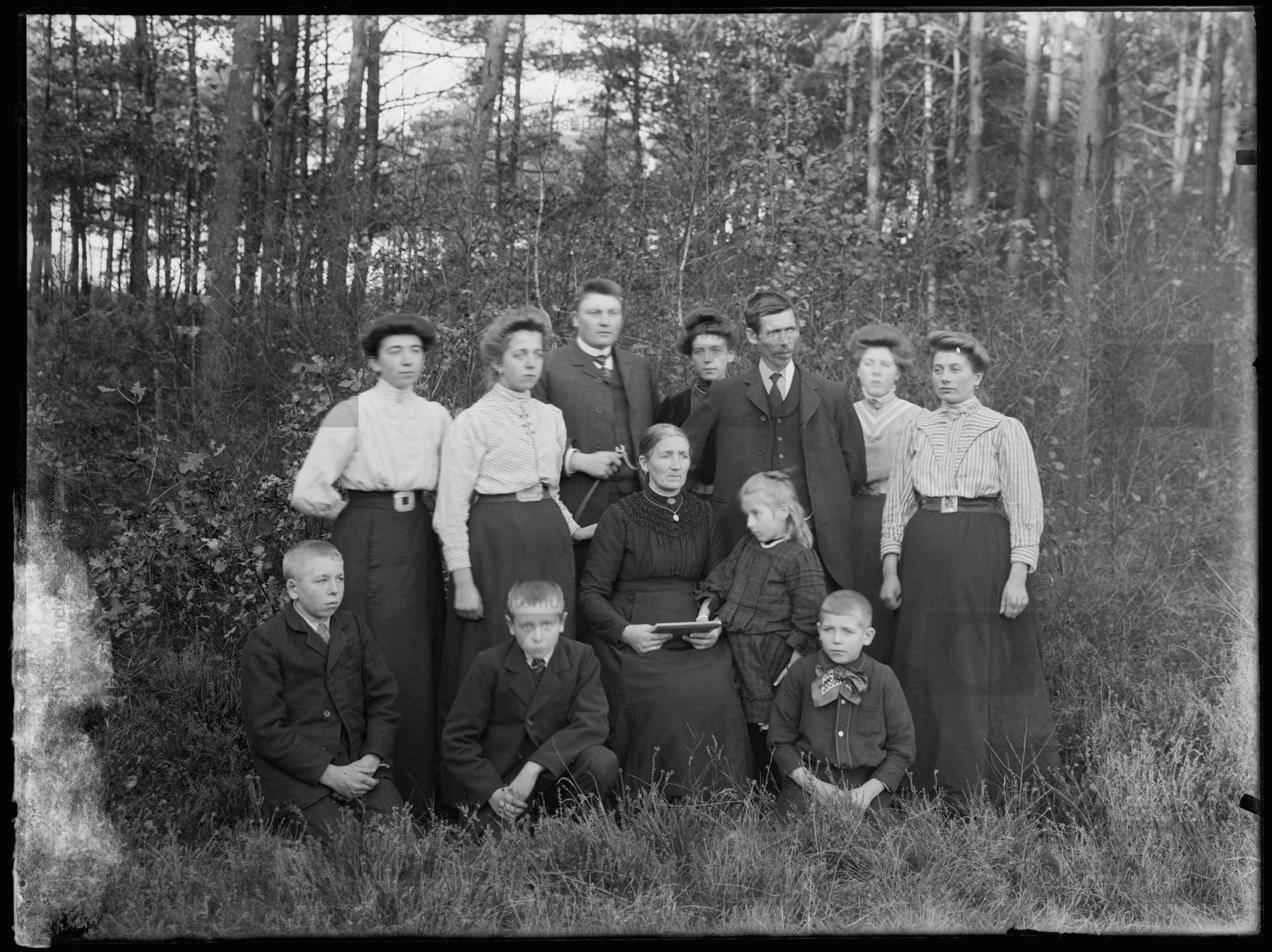 Gezin van jachtopziener J. Hulleman (staand, derde v...