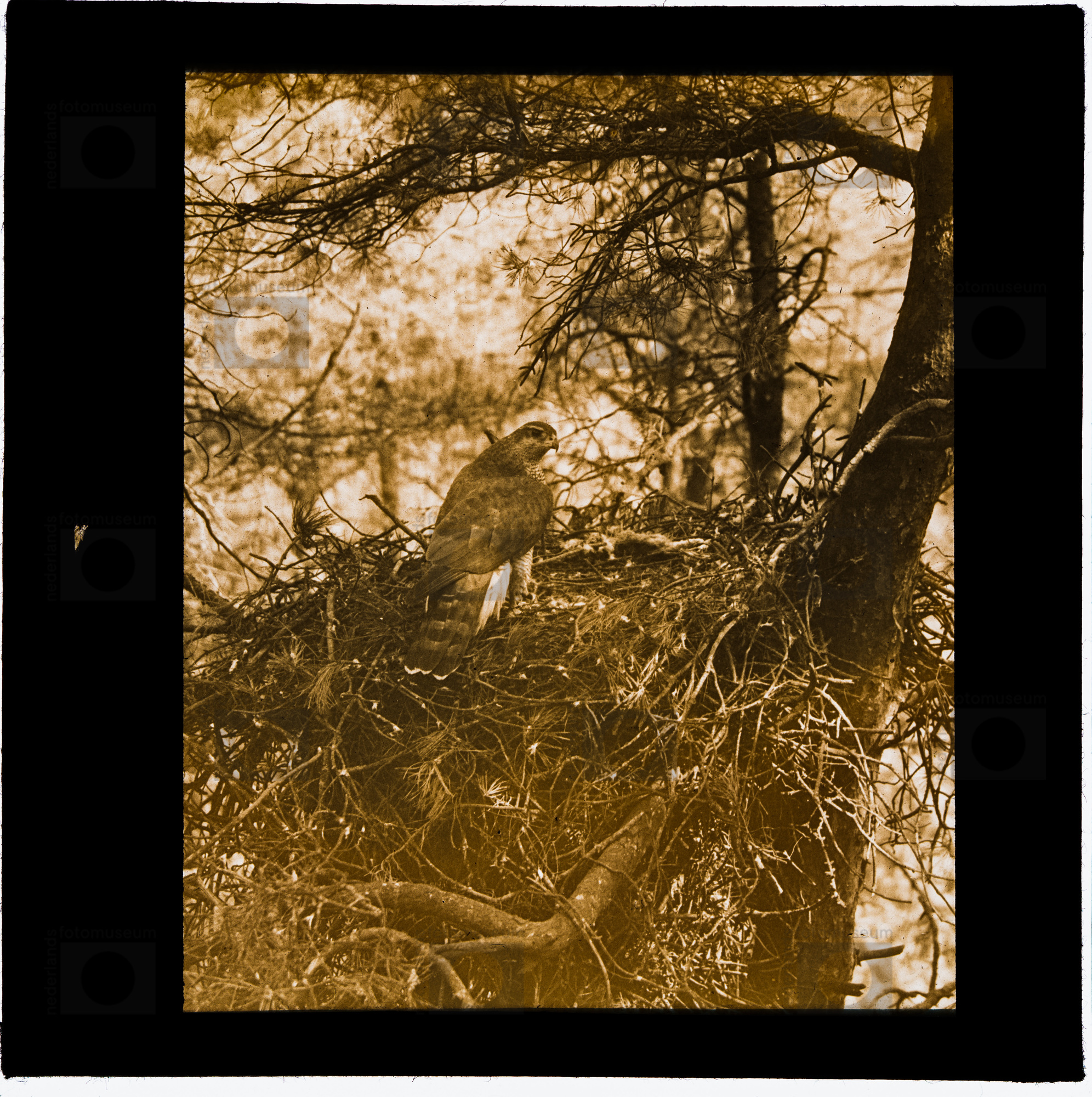 Vrouwtje Havik bij nest, Veluwe (1925-1938)