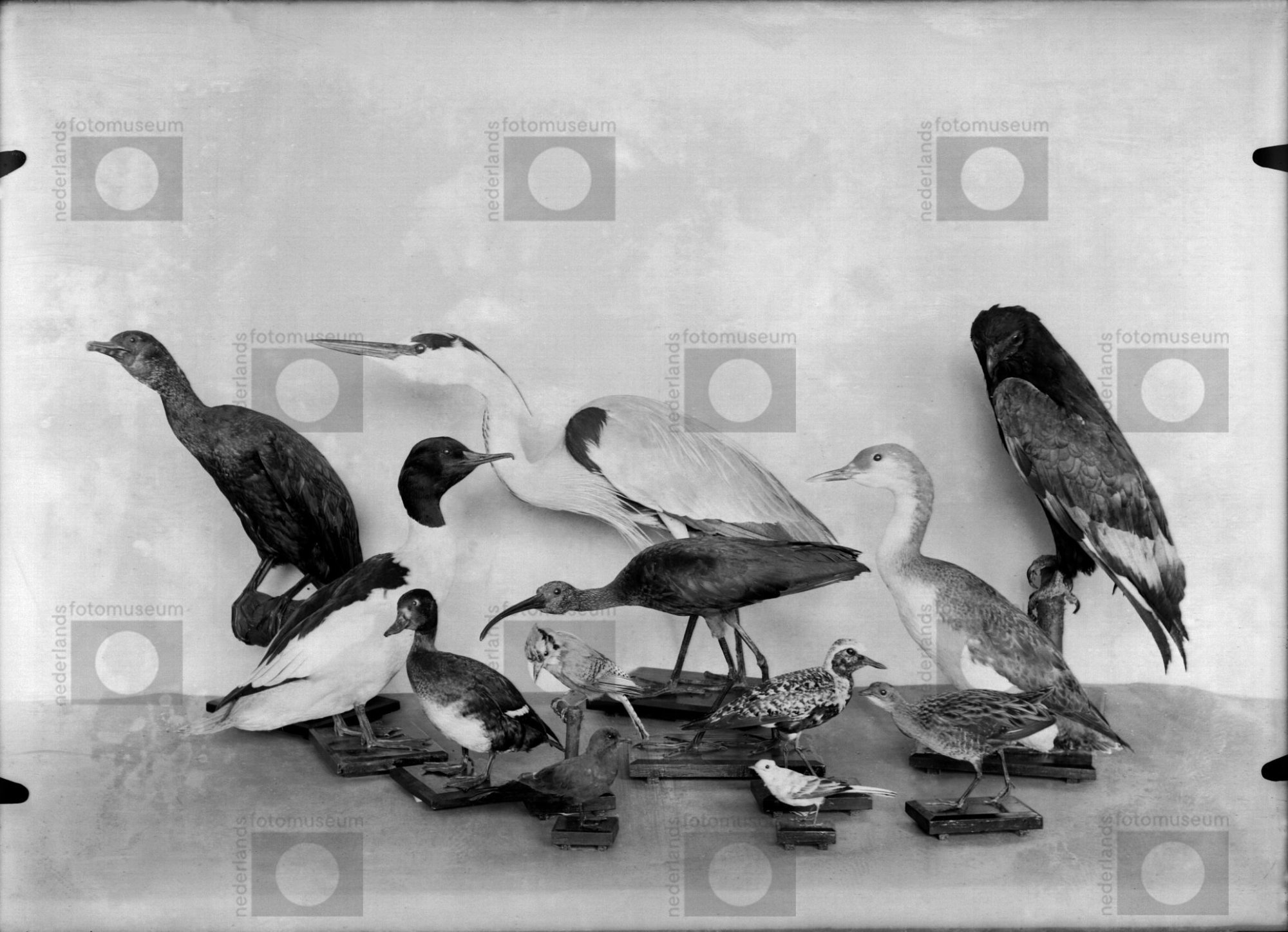 Opgezette vogels (aalscholver, blauwe reiger, batere...