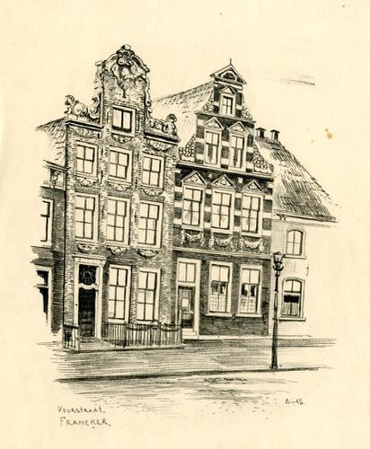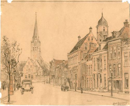 Tekening met potlood van de Voorstraat in Franeker d...