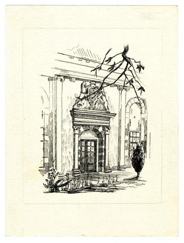 Tekening met potlood van de toreningang van het Mart...