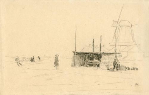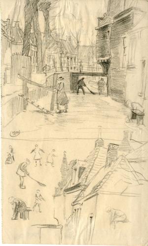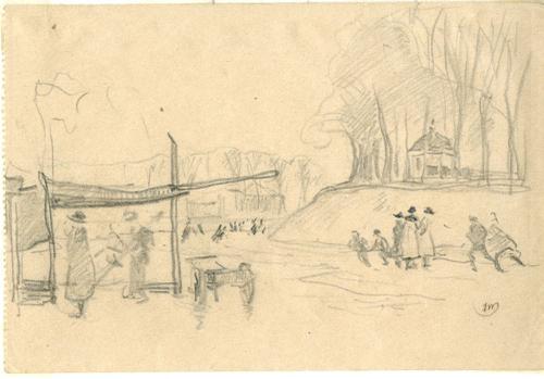 Tekening met potlood van een winters tafereel door I...