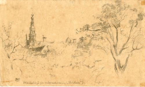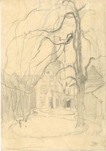 Tekening met potlood van een stadsgezicht in Franeke...