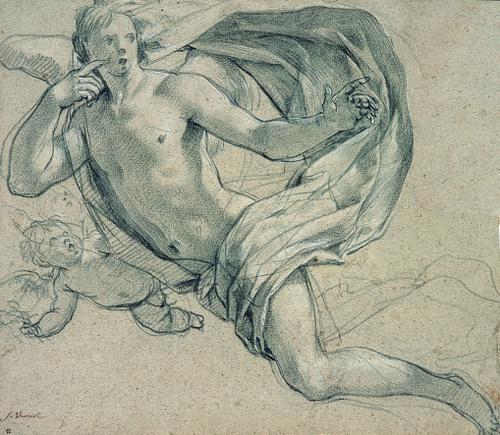 Gevleugelde figuur vergezeld door een putto.