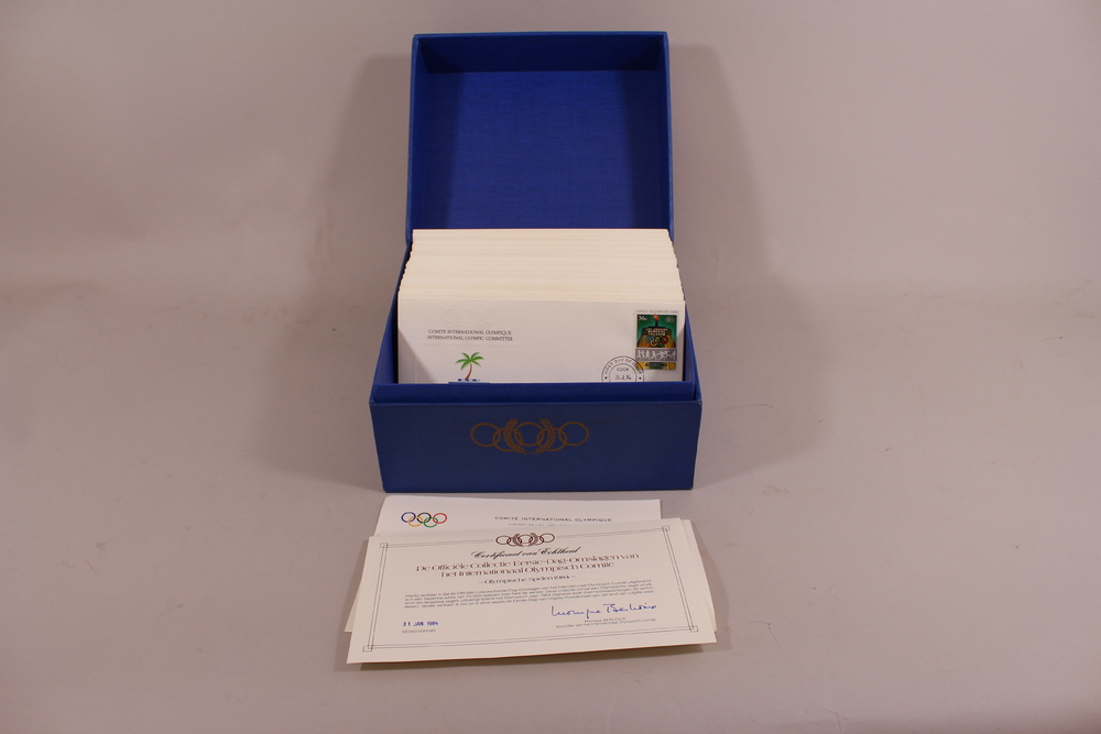 Eerstedagenveloppen in blauwe box Olympische Spelen ...