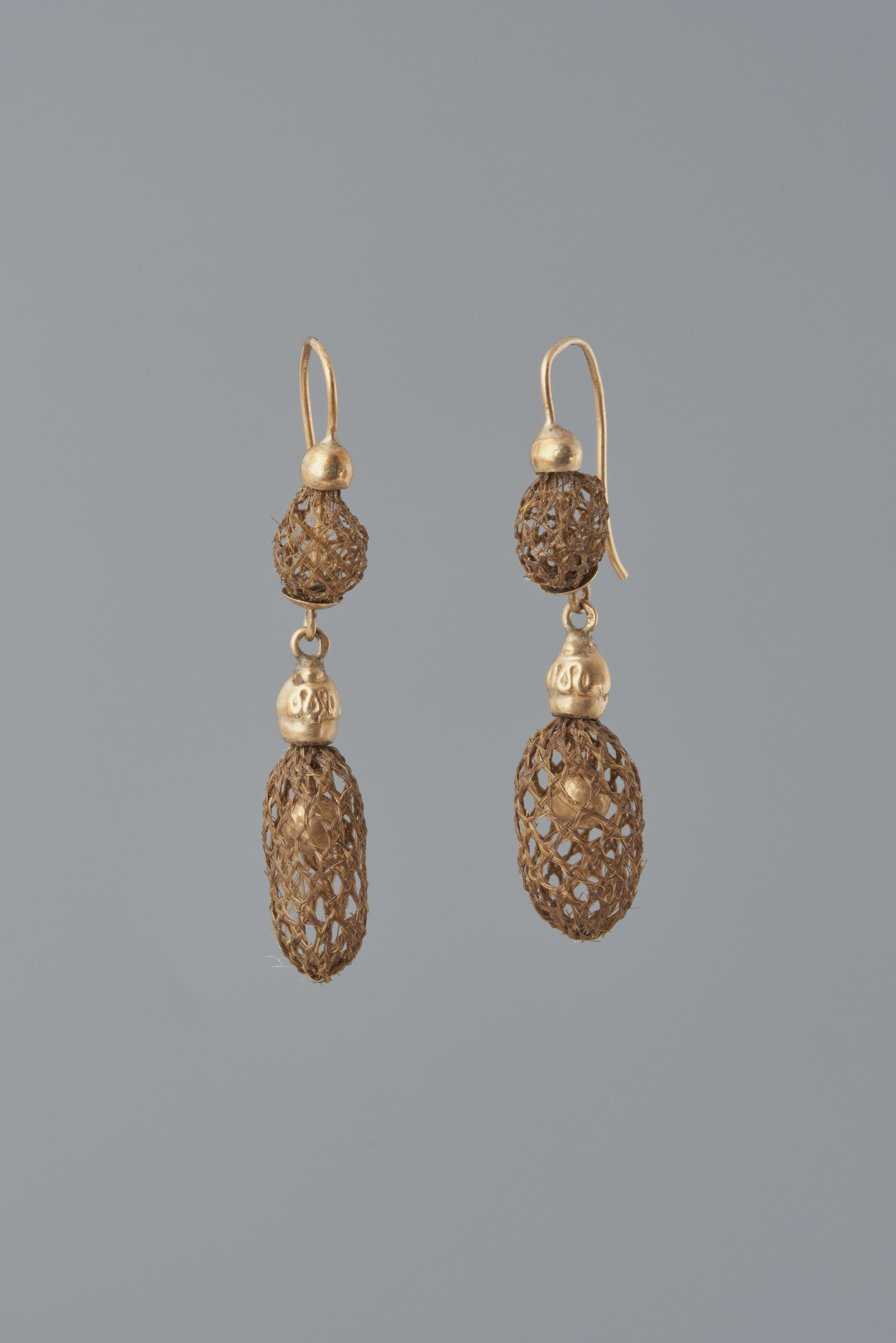 Paar oorbellen met haarwerk, Heemstede, circa 1875