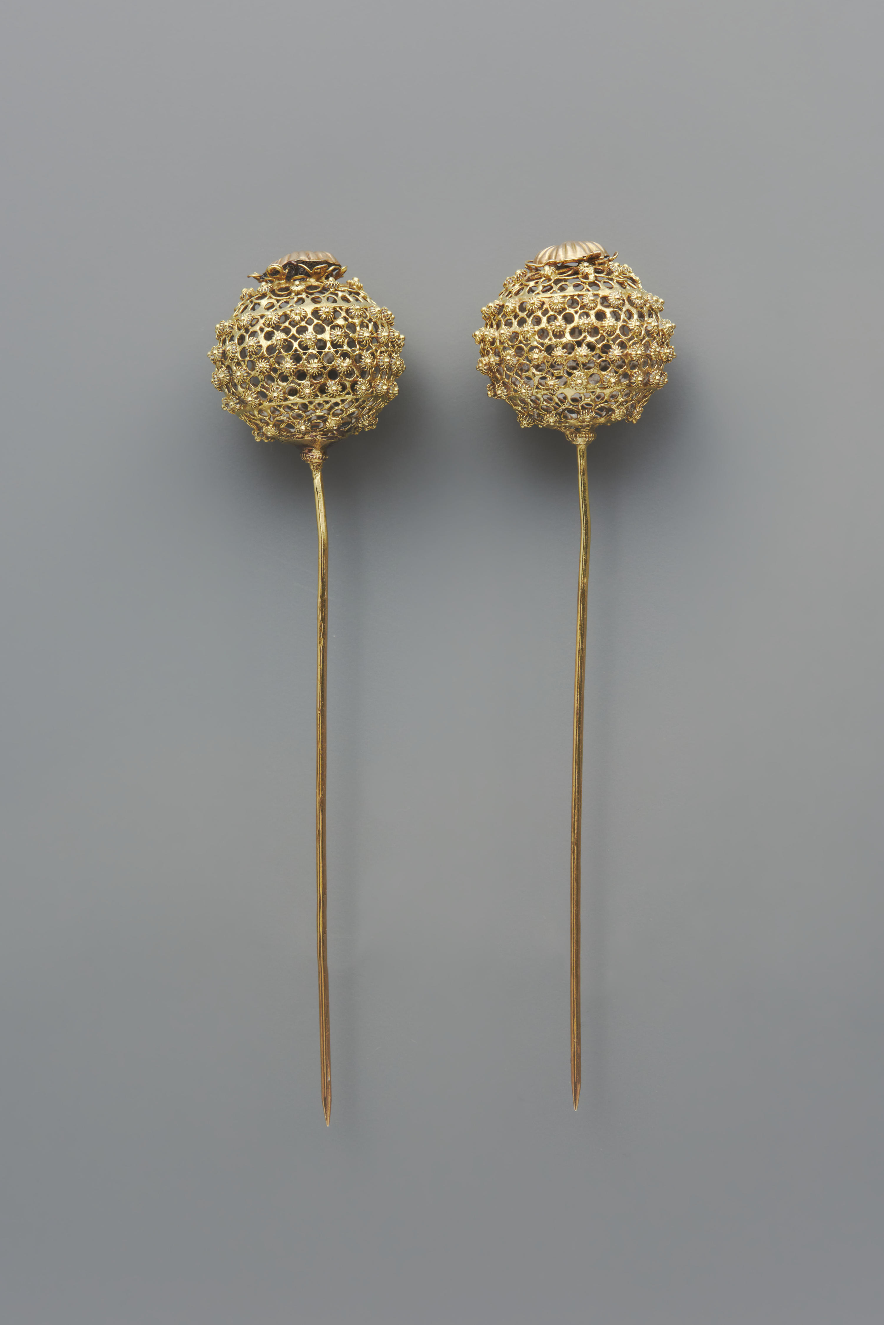 Paar vergulde zilveren zijnaalden, Zaanstreek, 1887