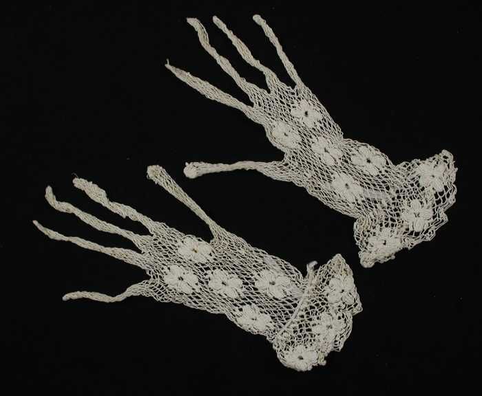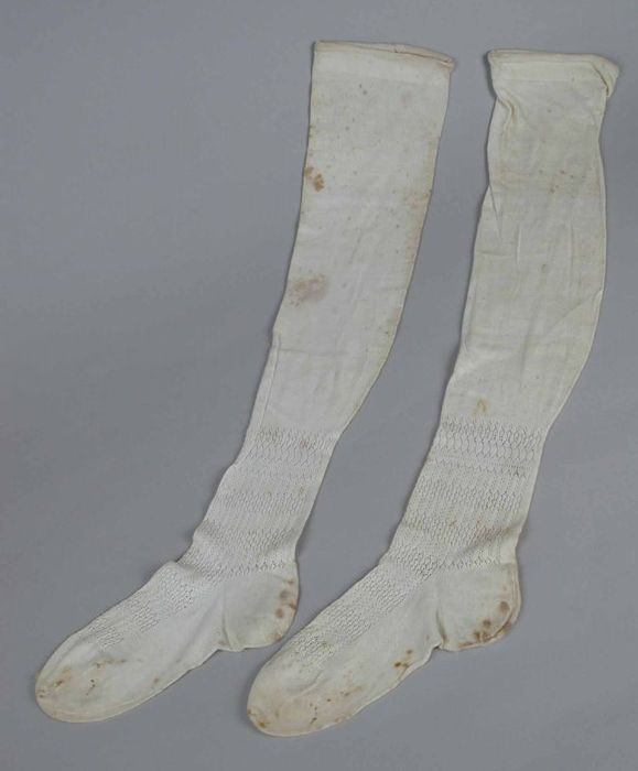 Paar lange kousen van fijn wit tricot katoen met ajo...