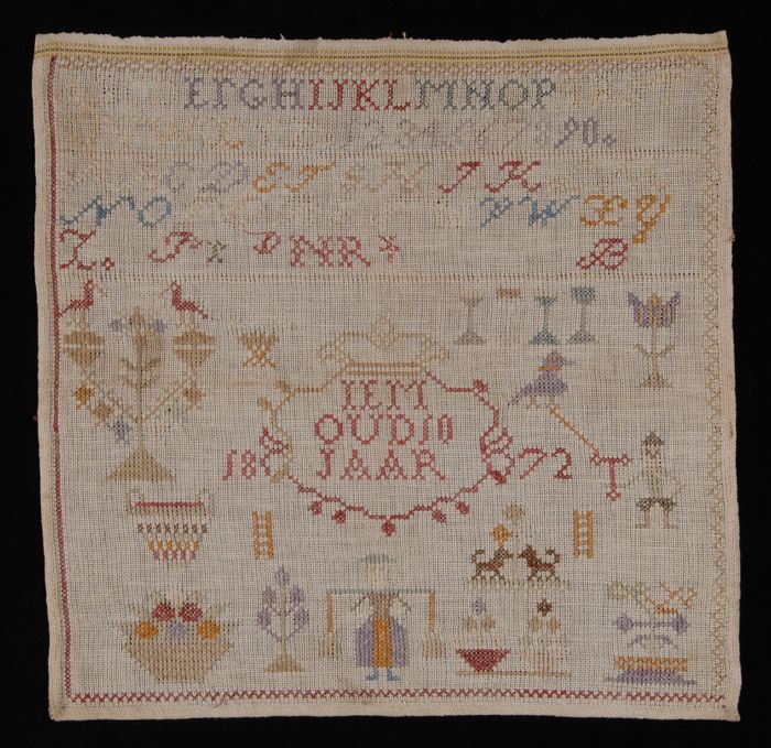 Vierkante merklap gewerkt in kruissteek in gekleurd ...