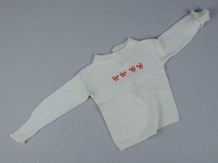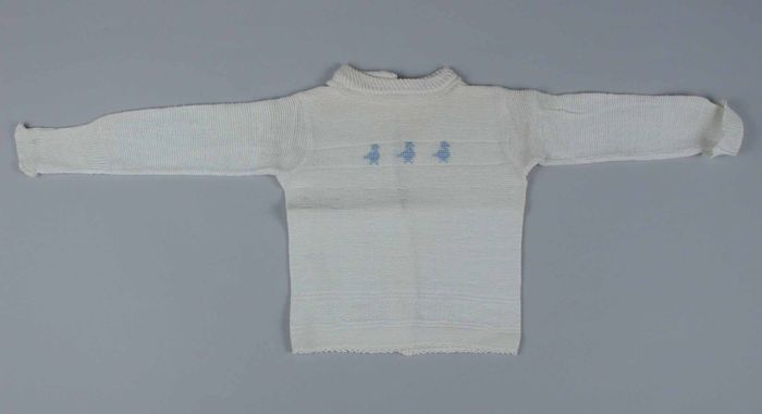 Babytrui gebreid van wit katoen in reliëf, lange mou...