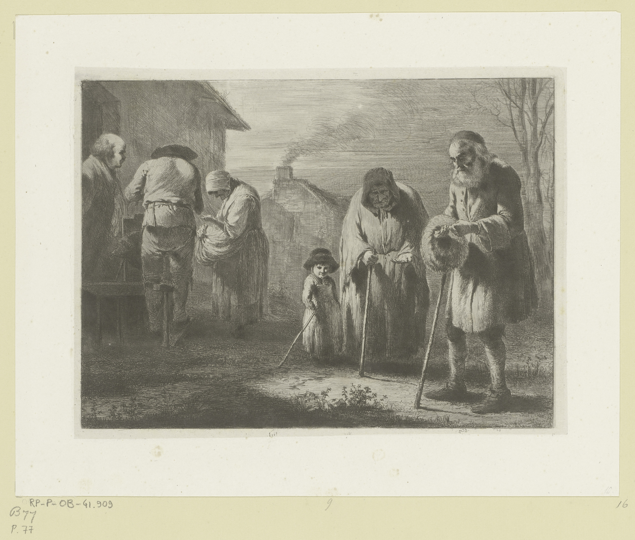 Landschap met figuren voor een huis aan de rand van ...