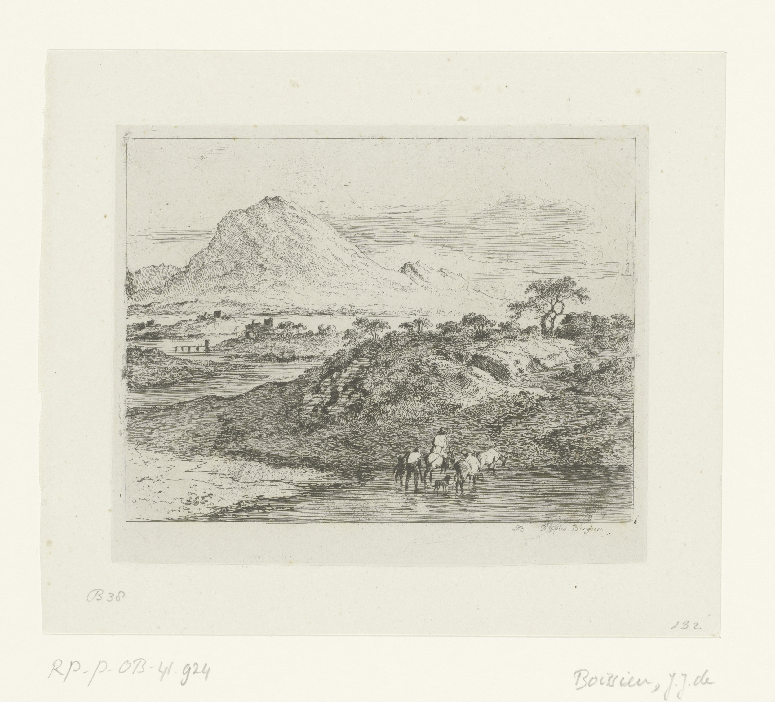 Landschap met figuren bij een doorwaadbare plaats