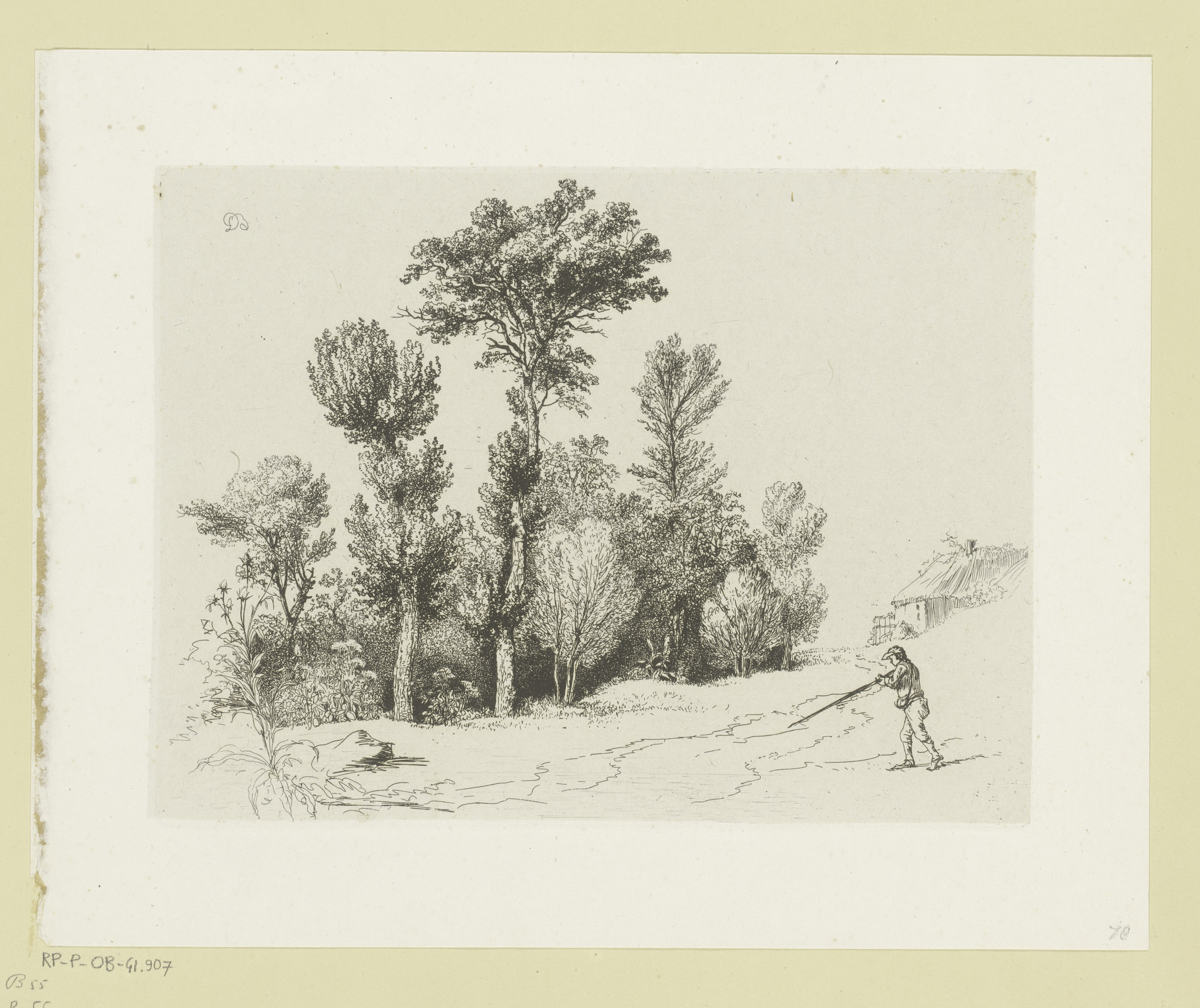 Landschap met een jager voor een bos