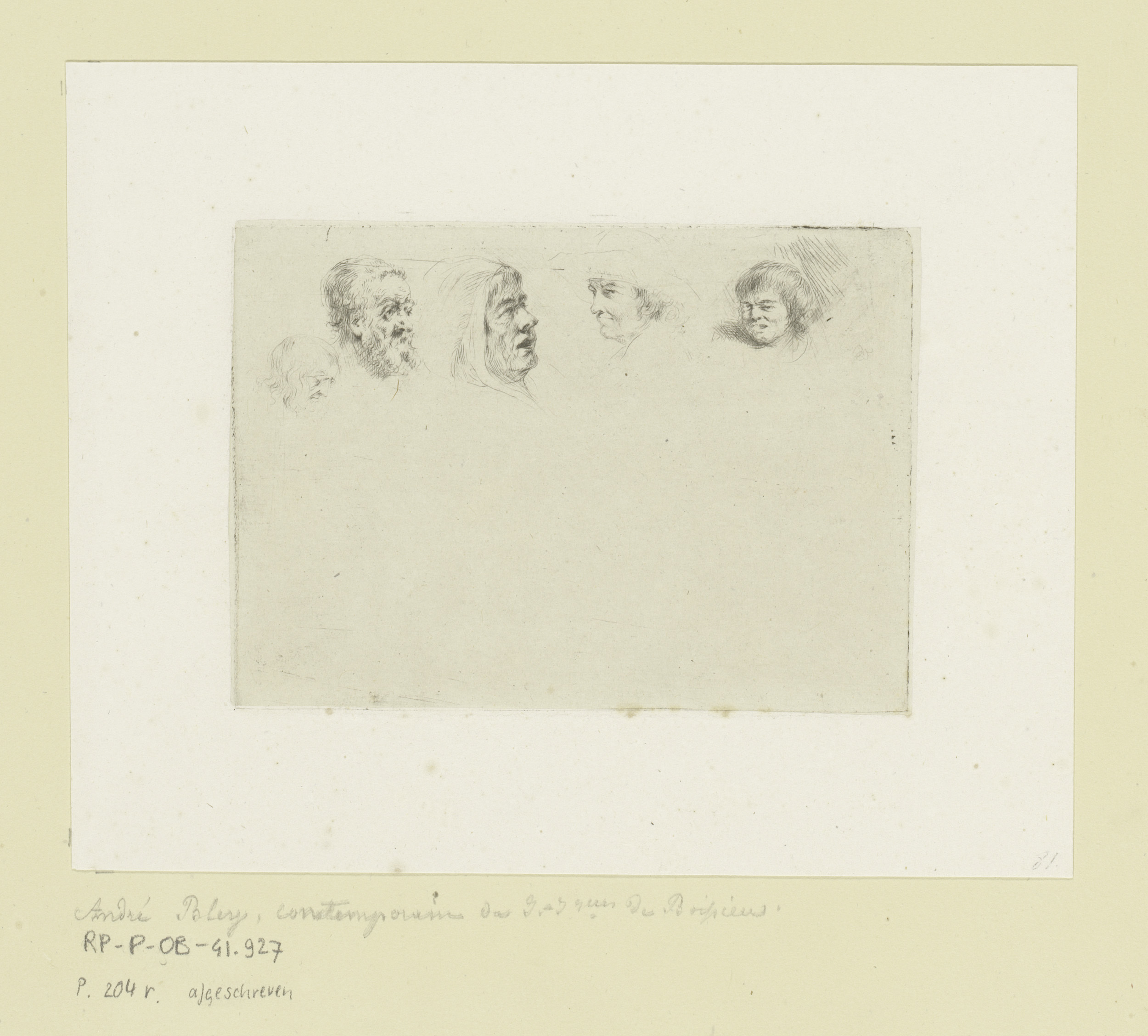 Compositie met vijf hoofden van mannen van verschill...