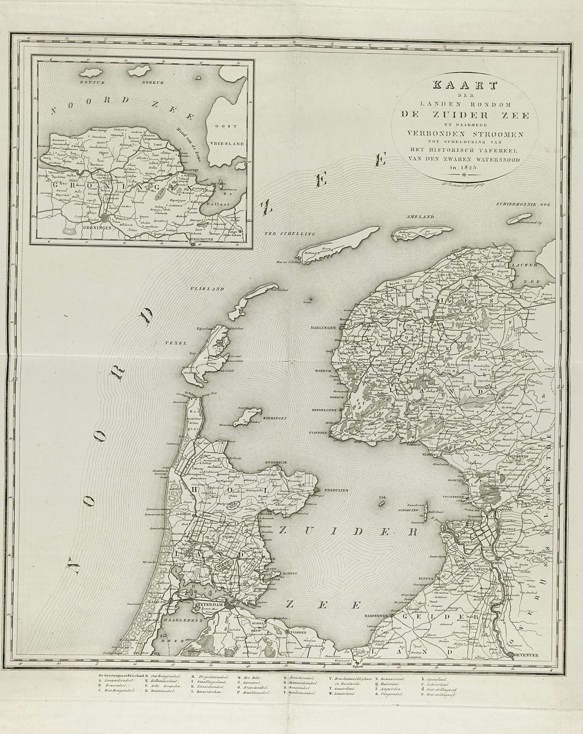 Kaart van de gebieden rond de Zuiderzee getroffen do...