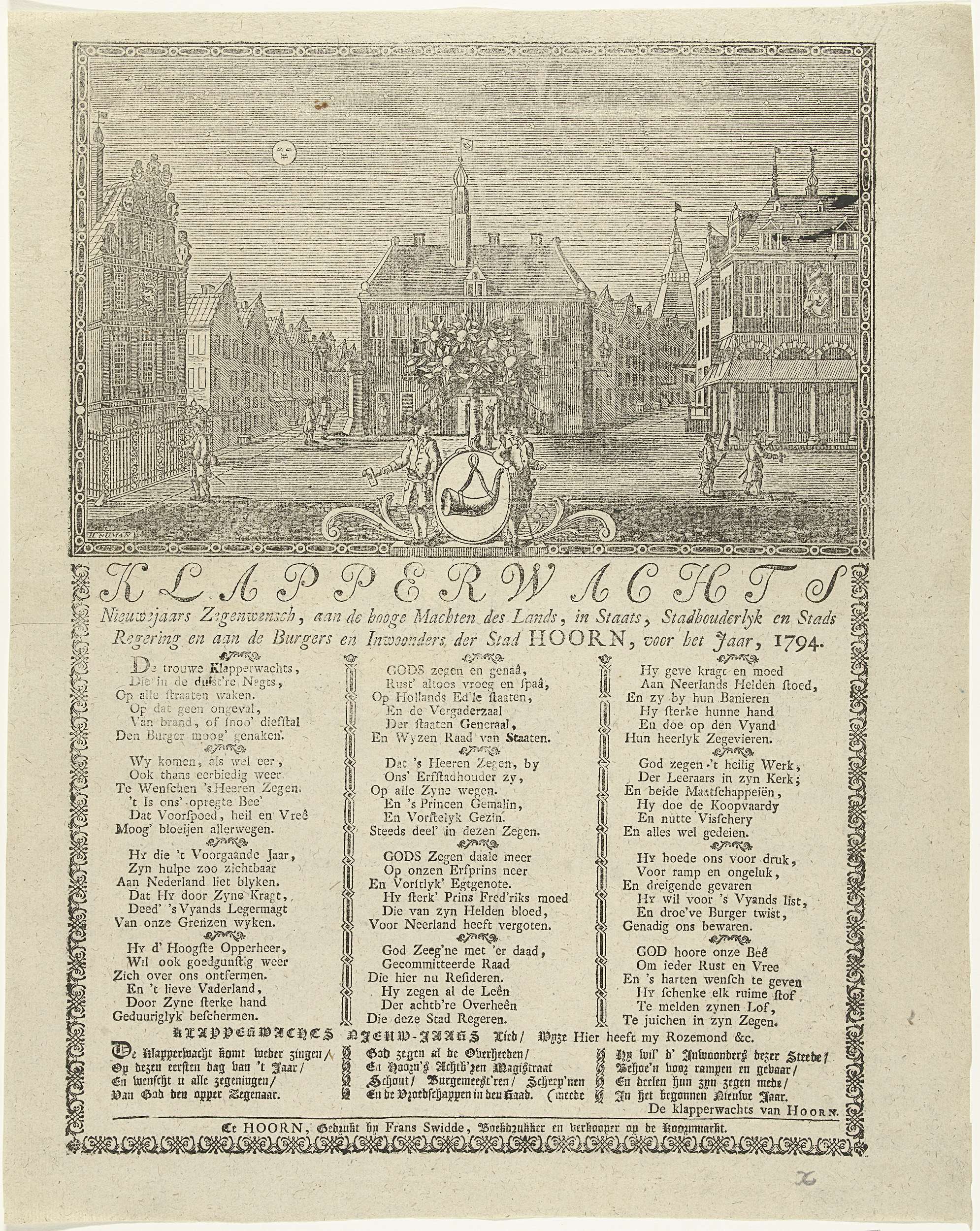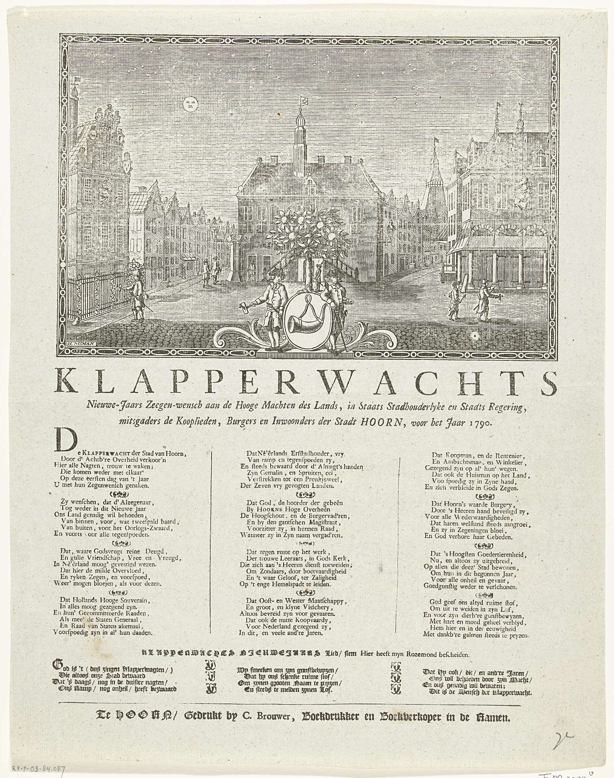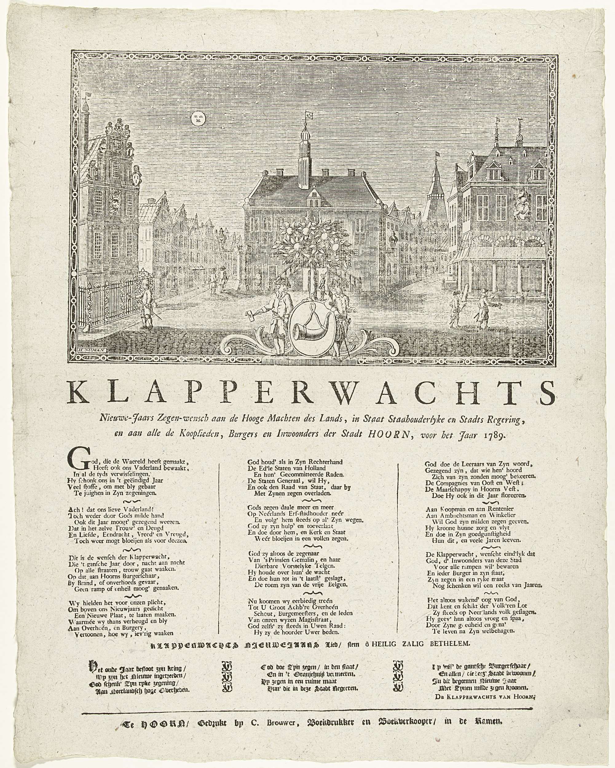 Nieuwjaarsprent van de Hoornse klapperwacht voor het...