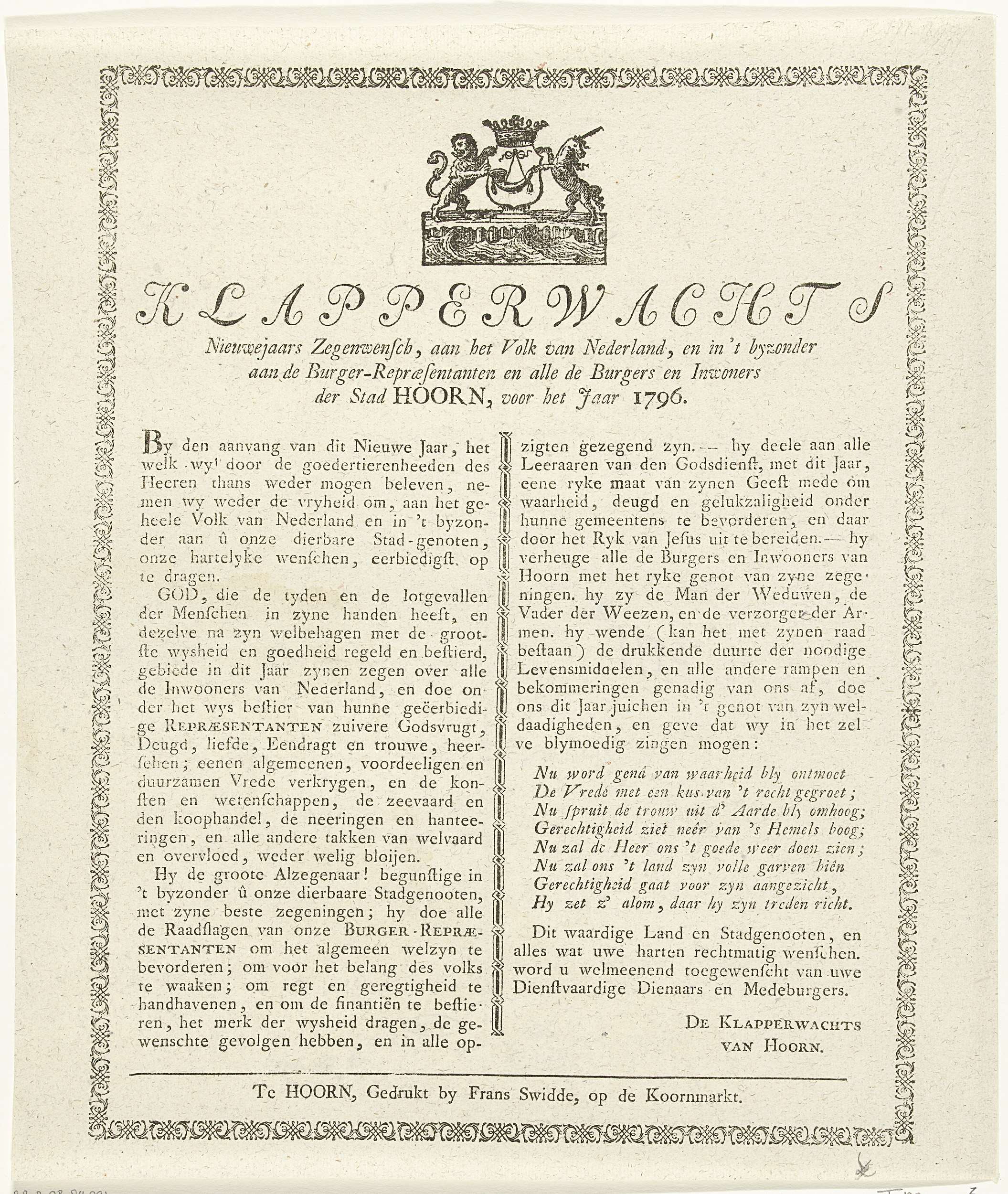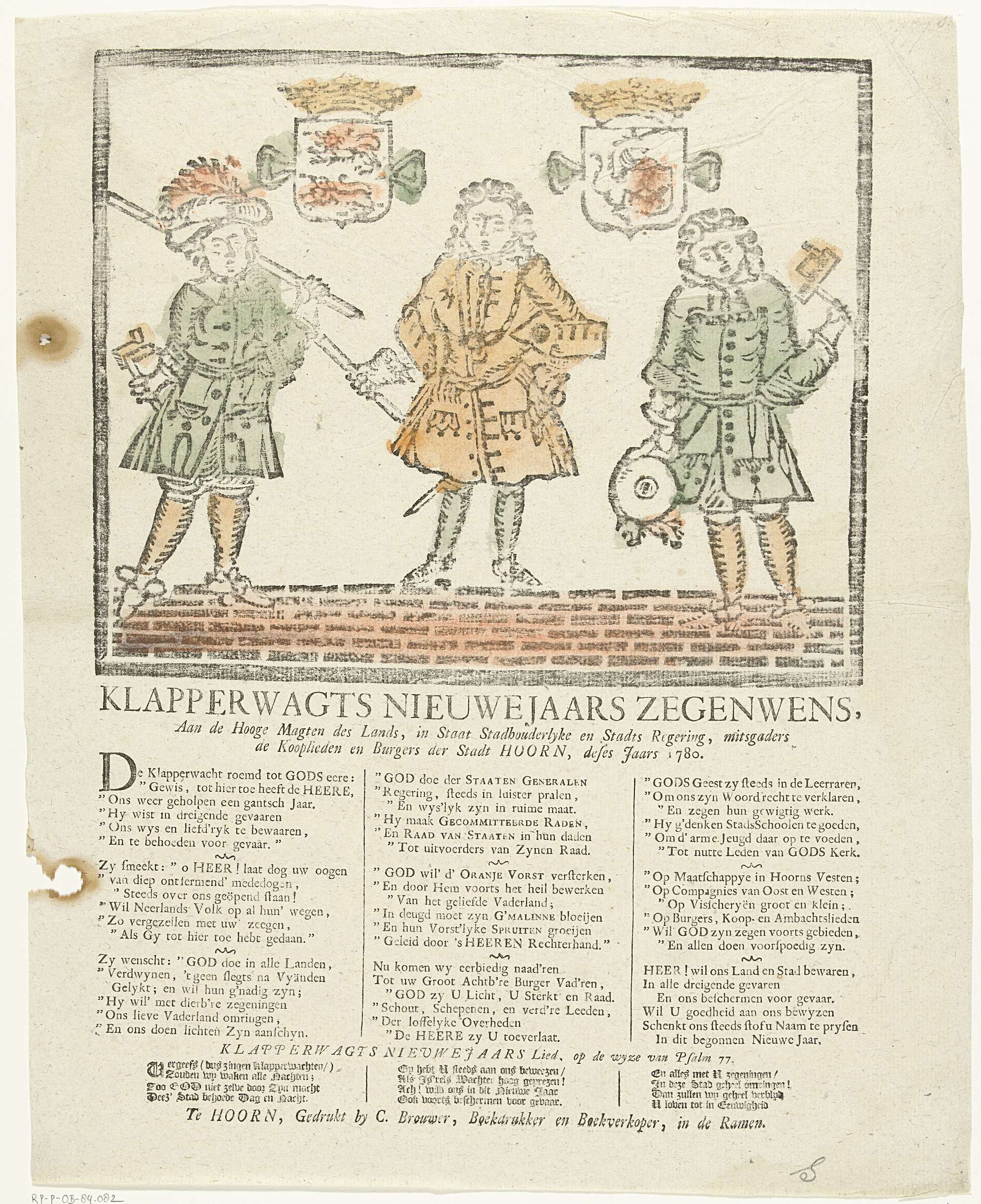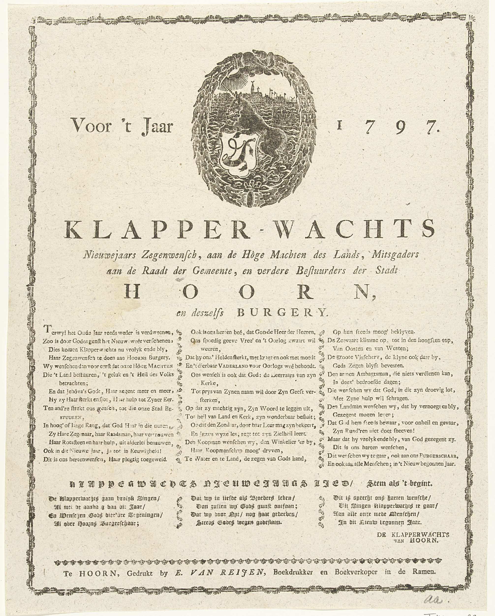 Nieuwjaarsprent van de Hoornse klapperwacht voor het...