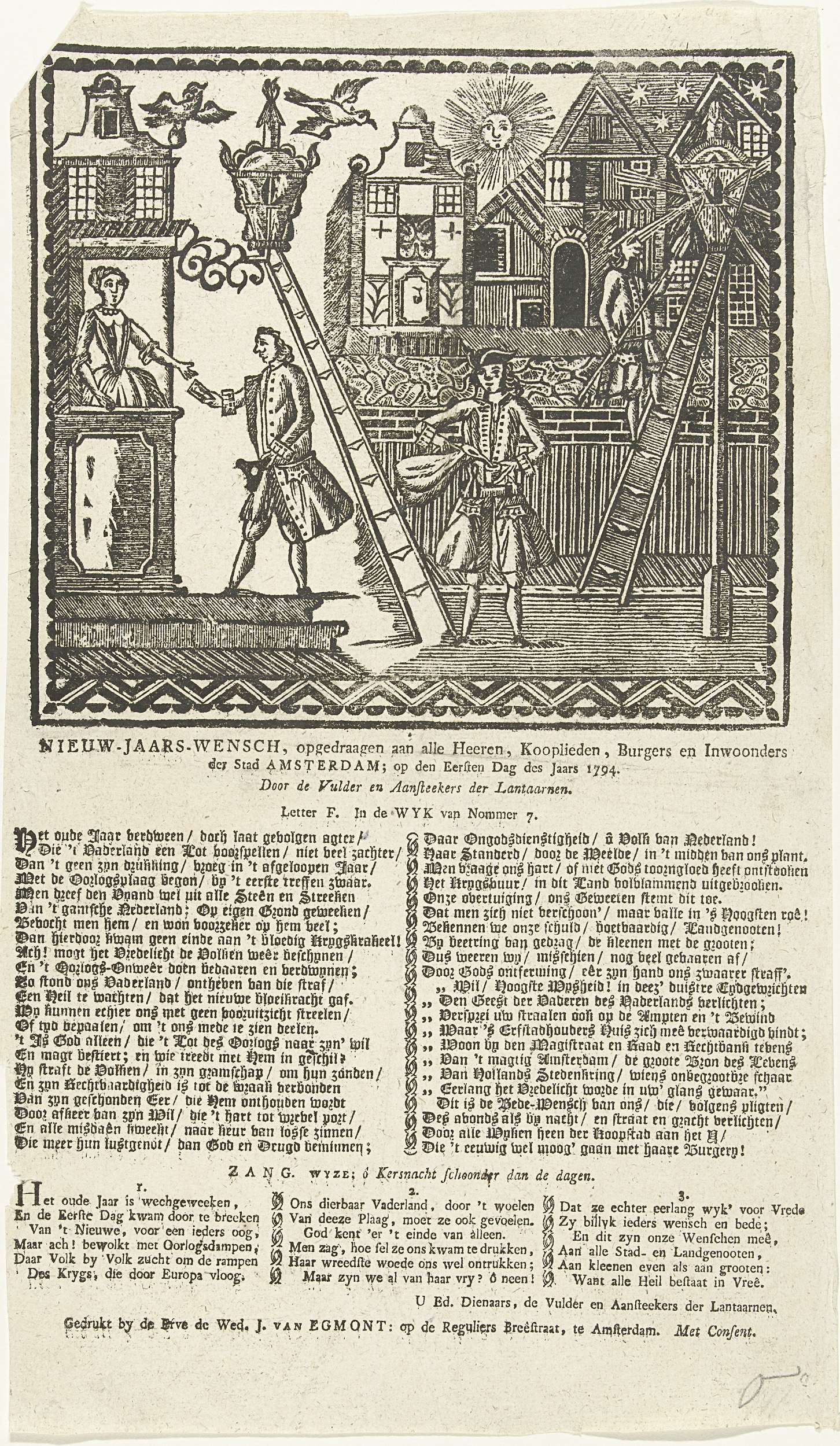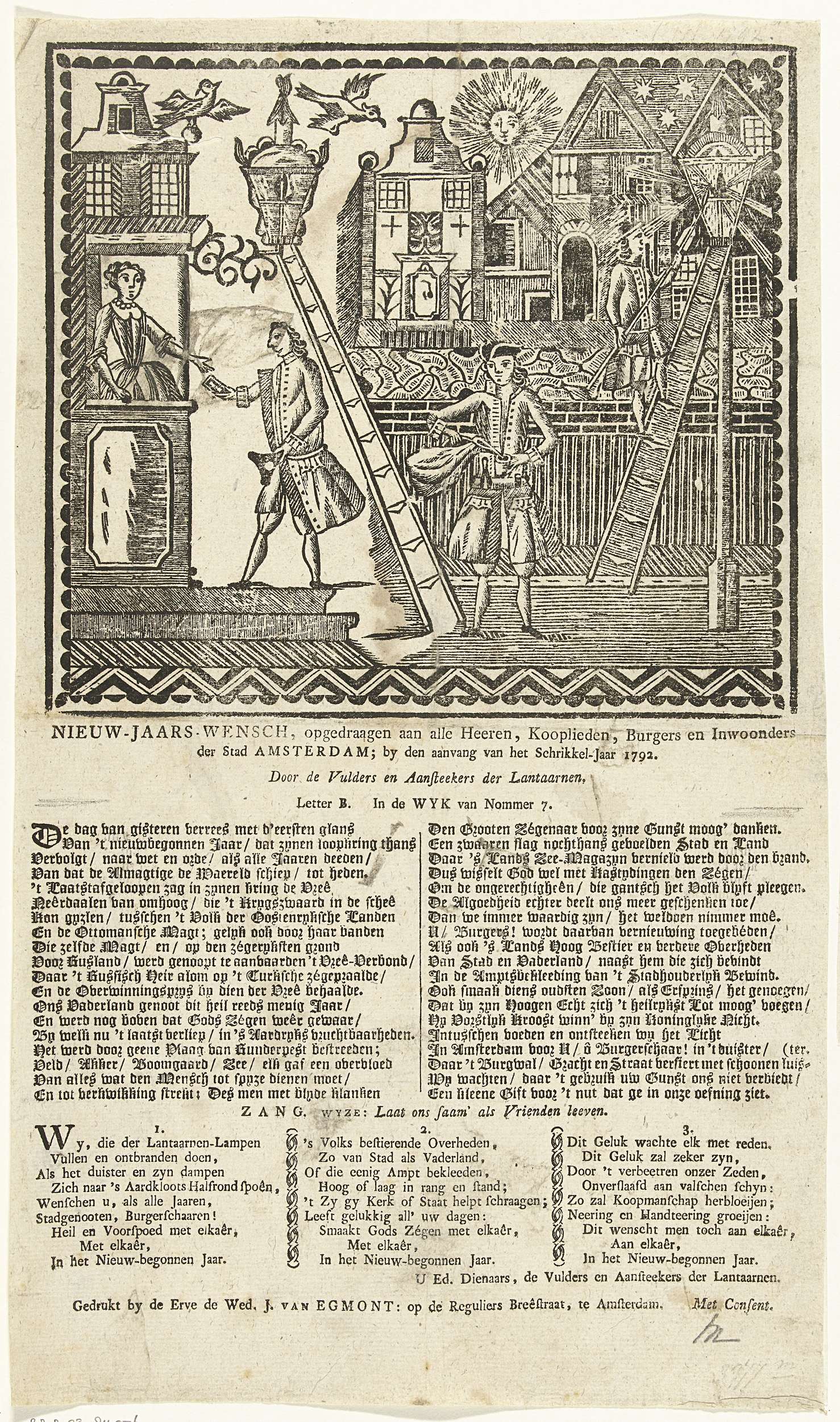 Nieuwjaarsprent van de Amsterdamse lantaarnopstekers...