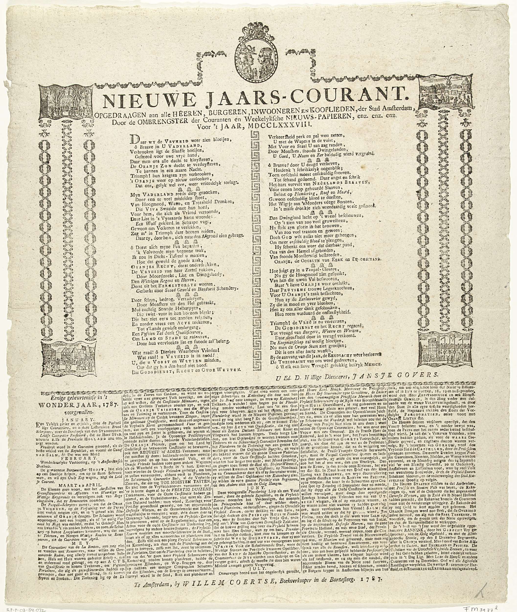 Nieuwjaarsprent van de Amsterdamse courantbezorgers ...