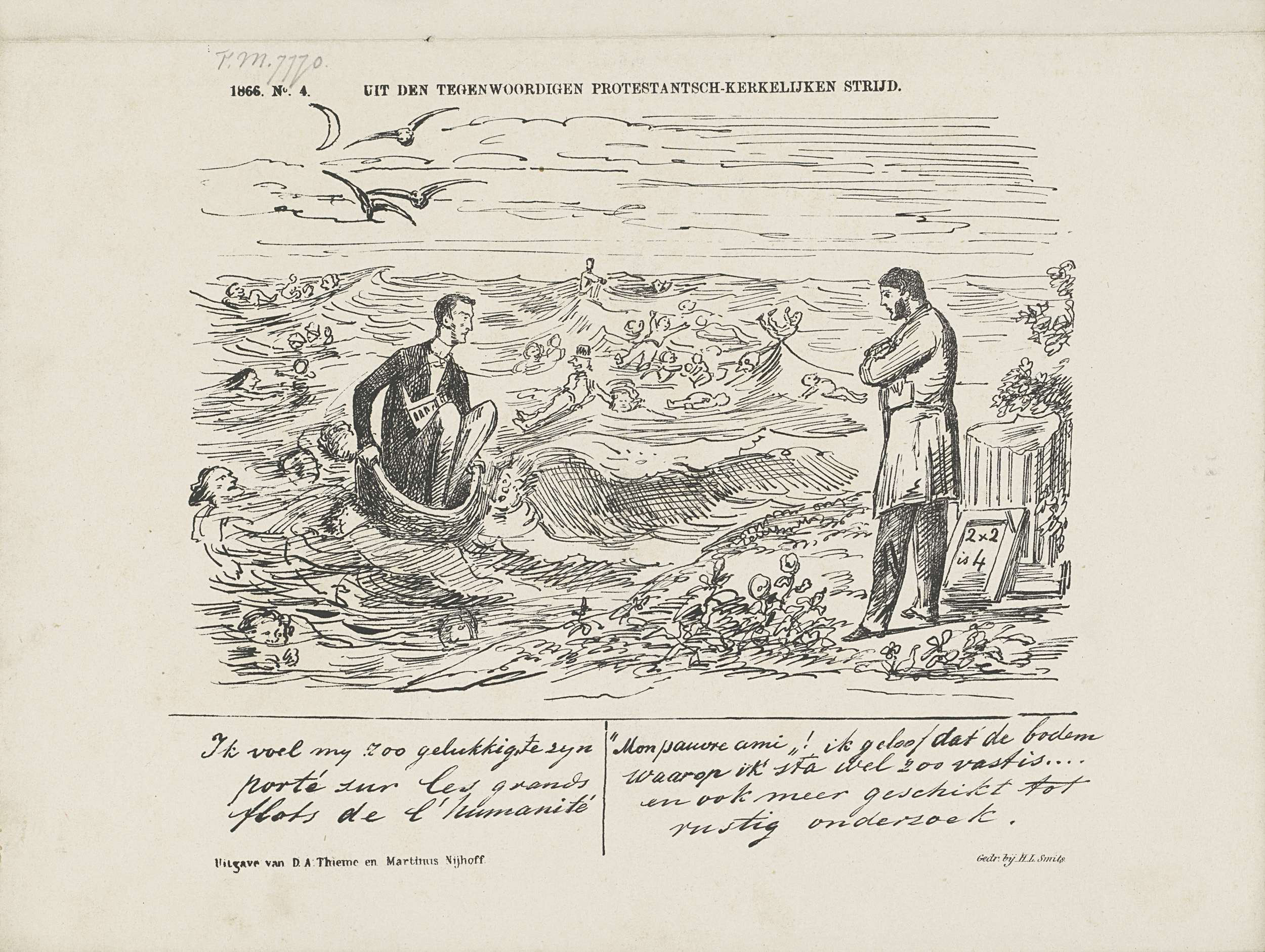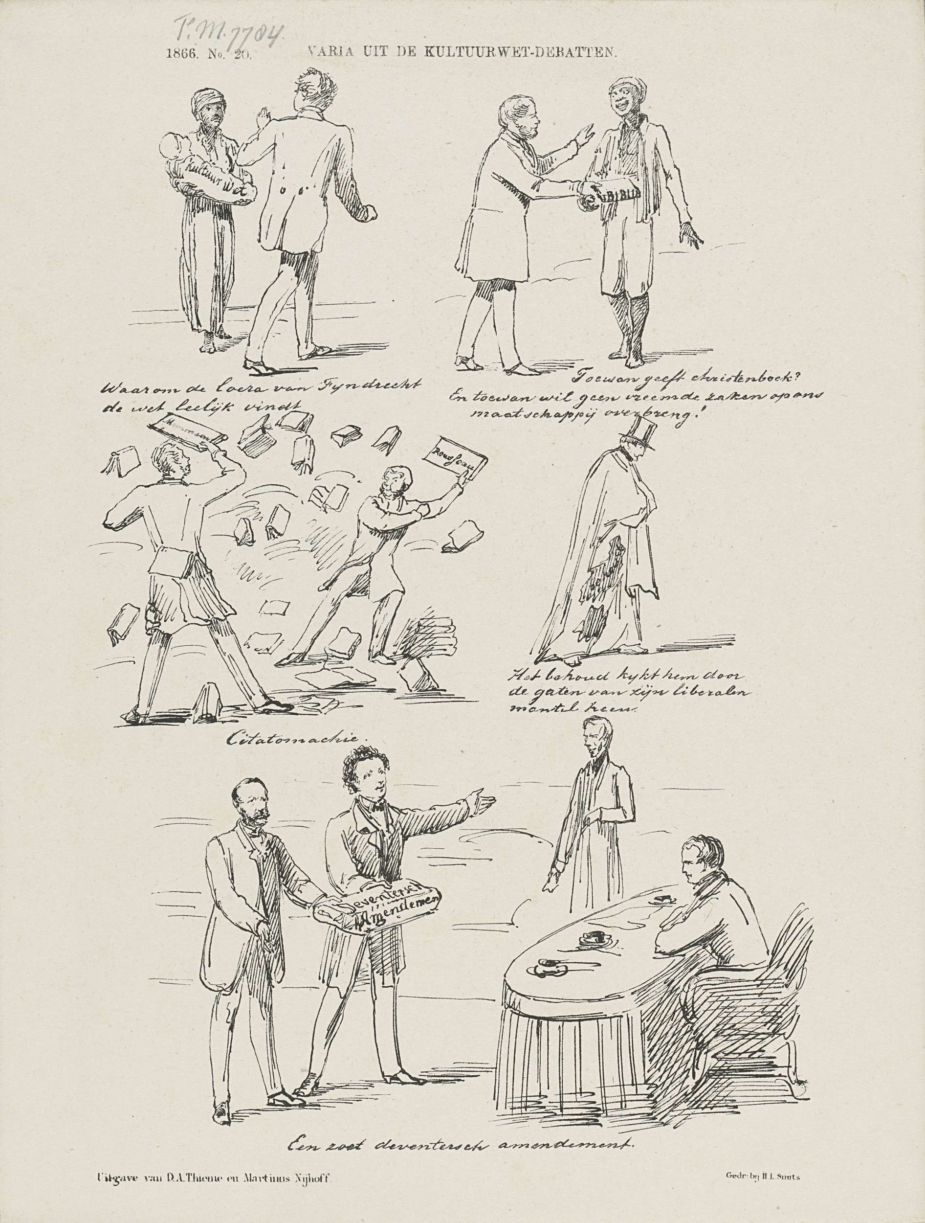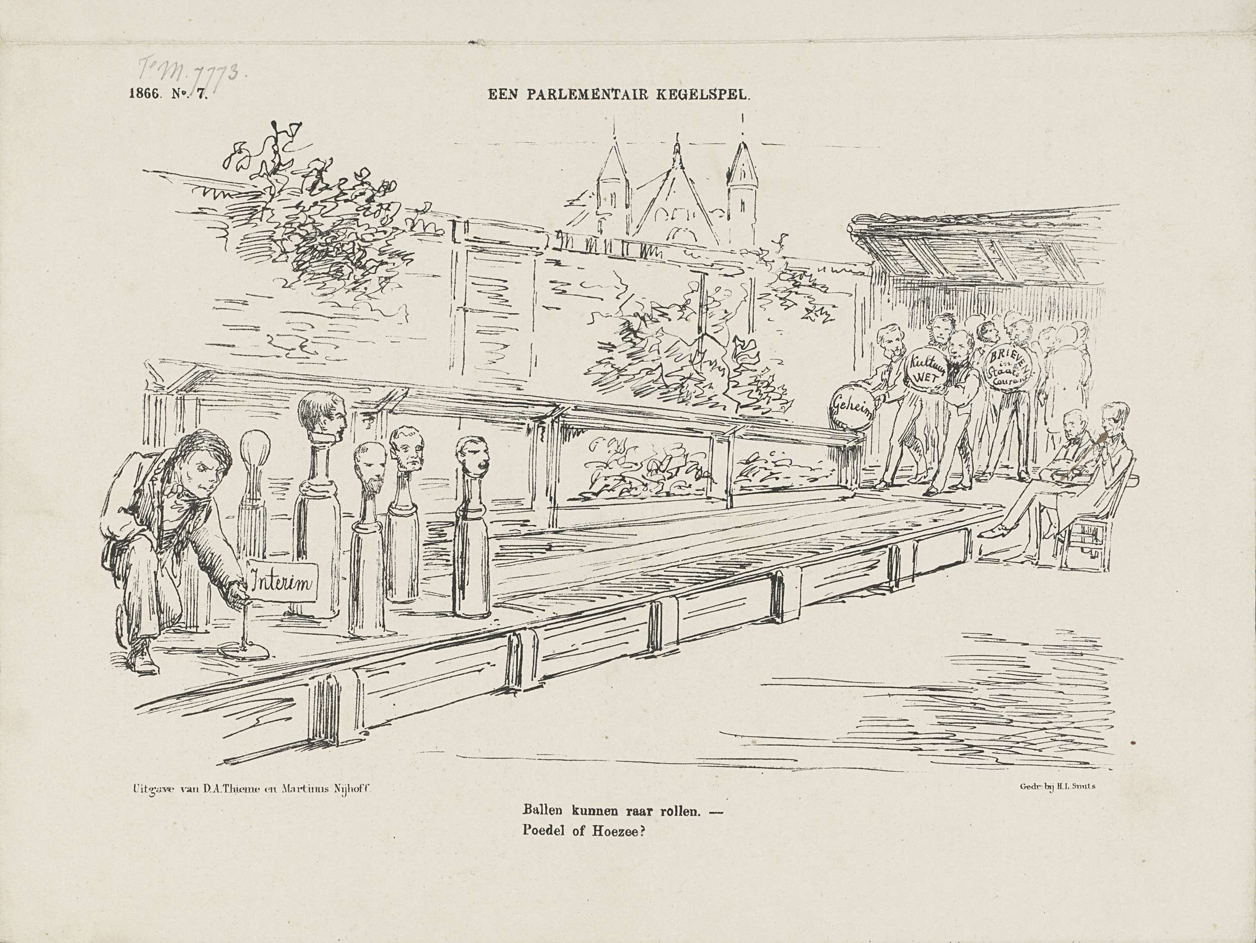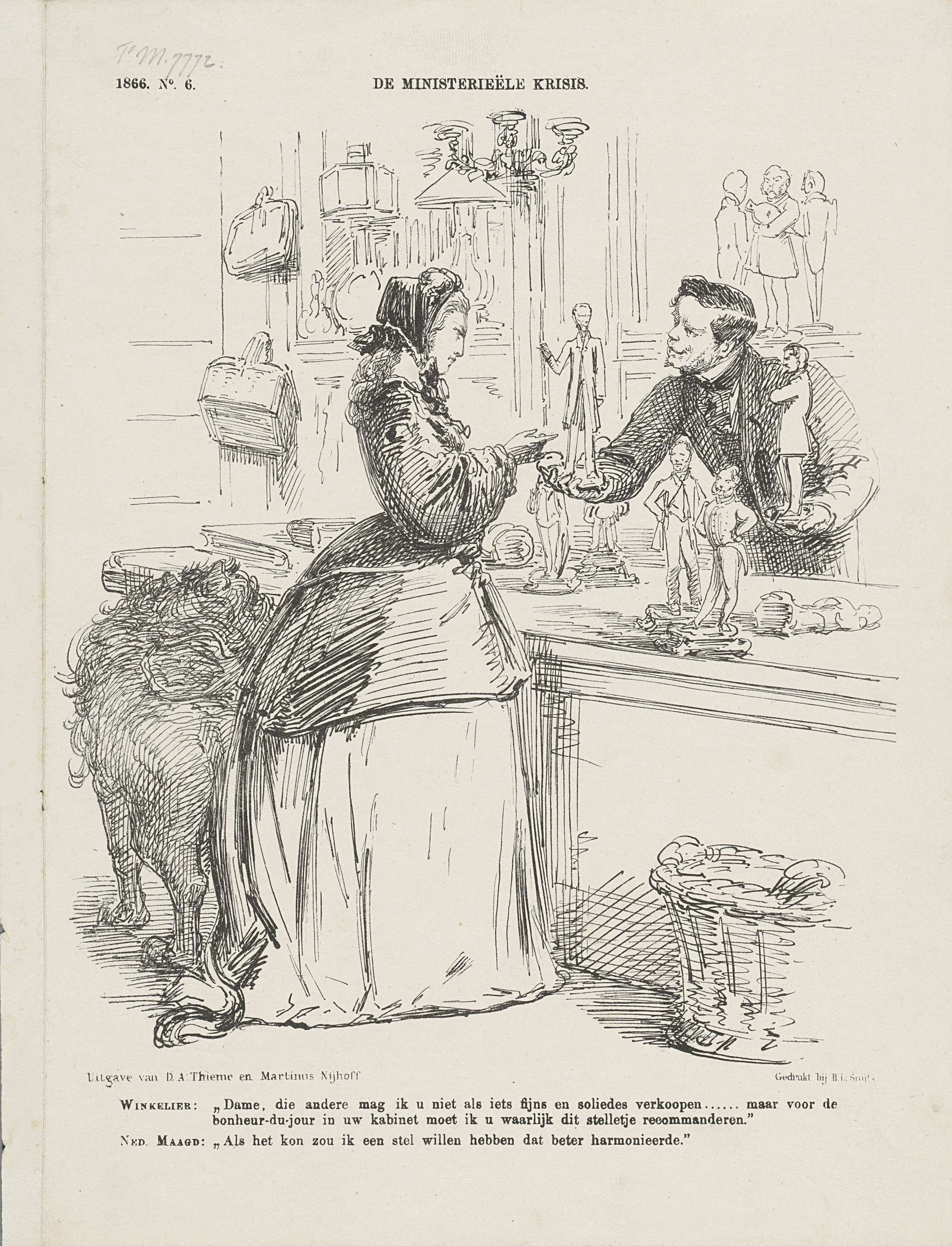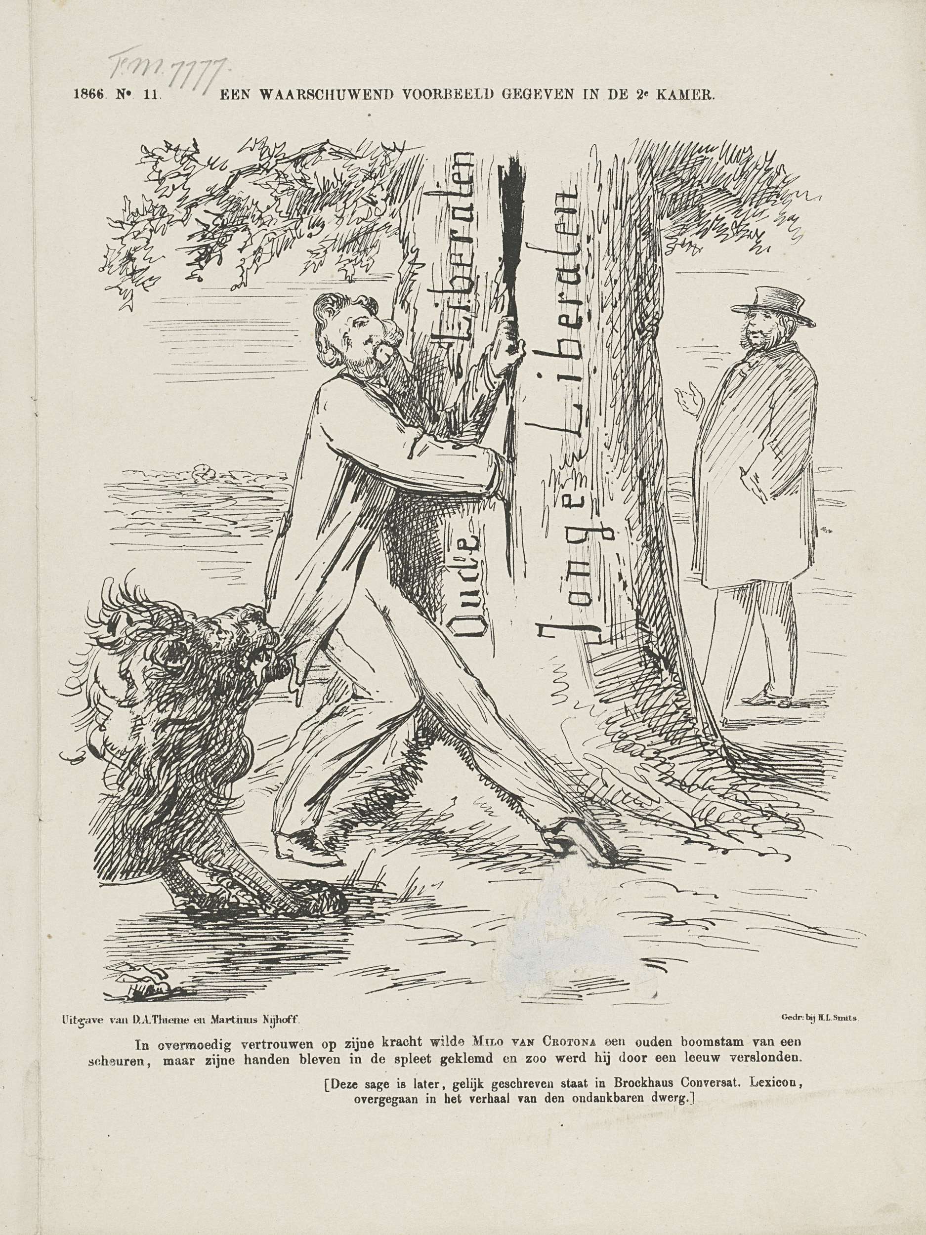 Spotprent op de onenigheid tussen Thorbecke en Frans...