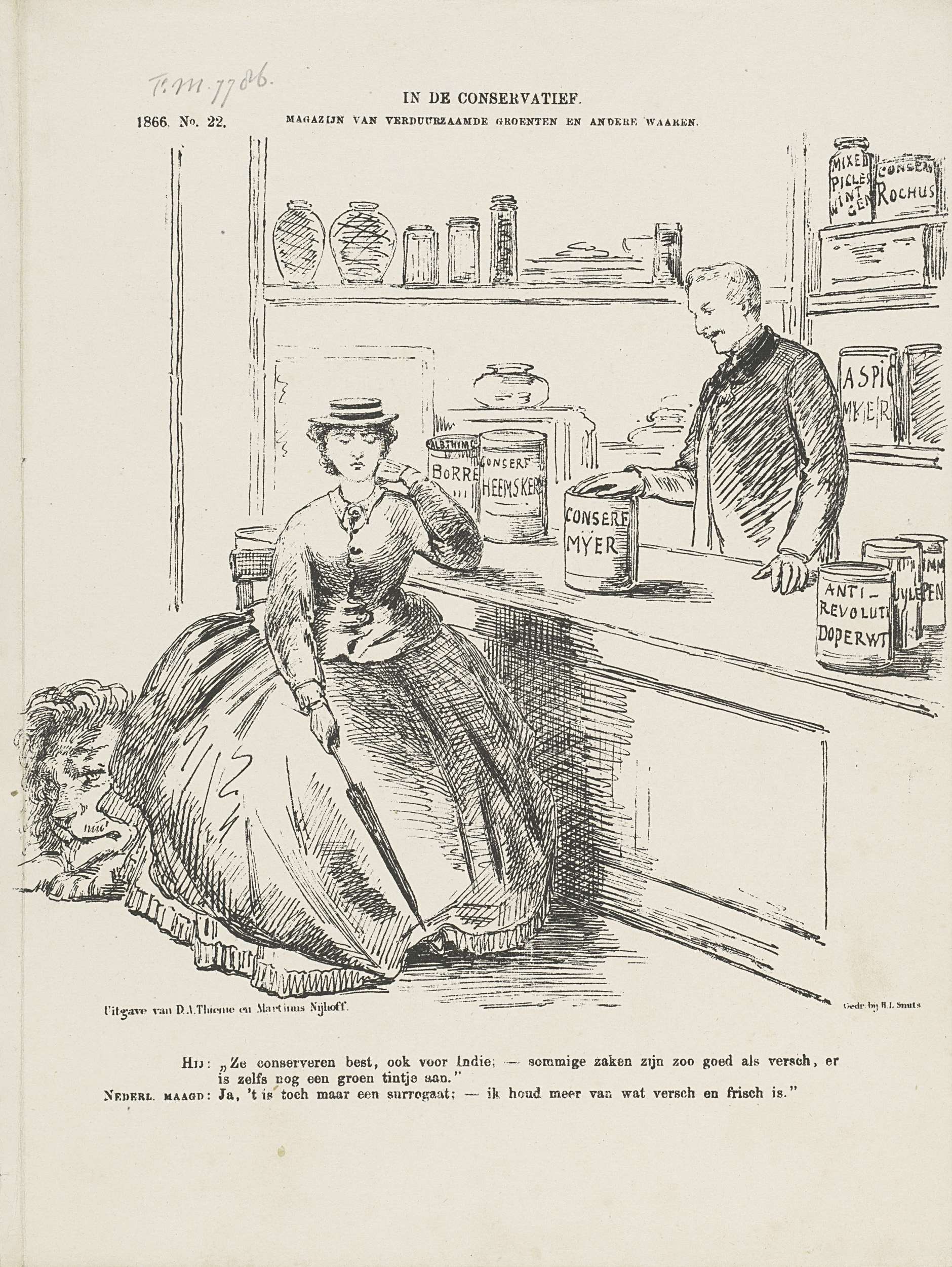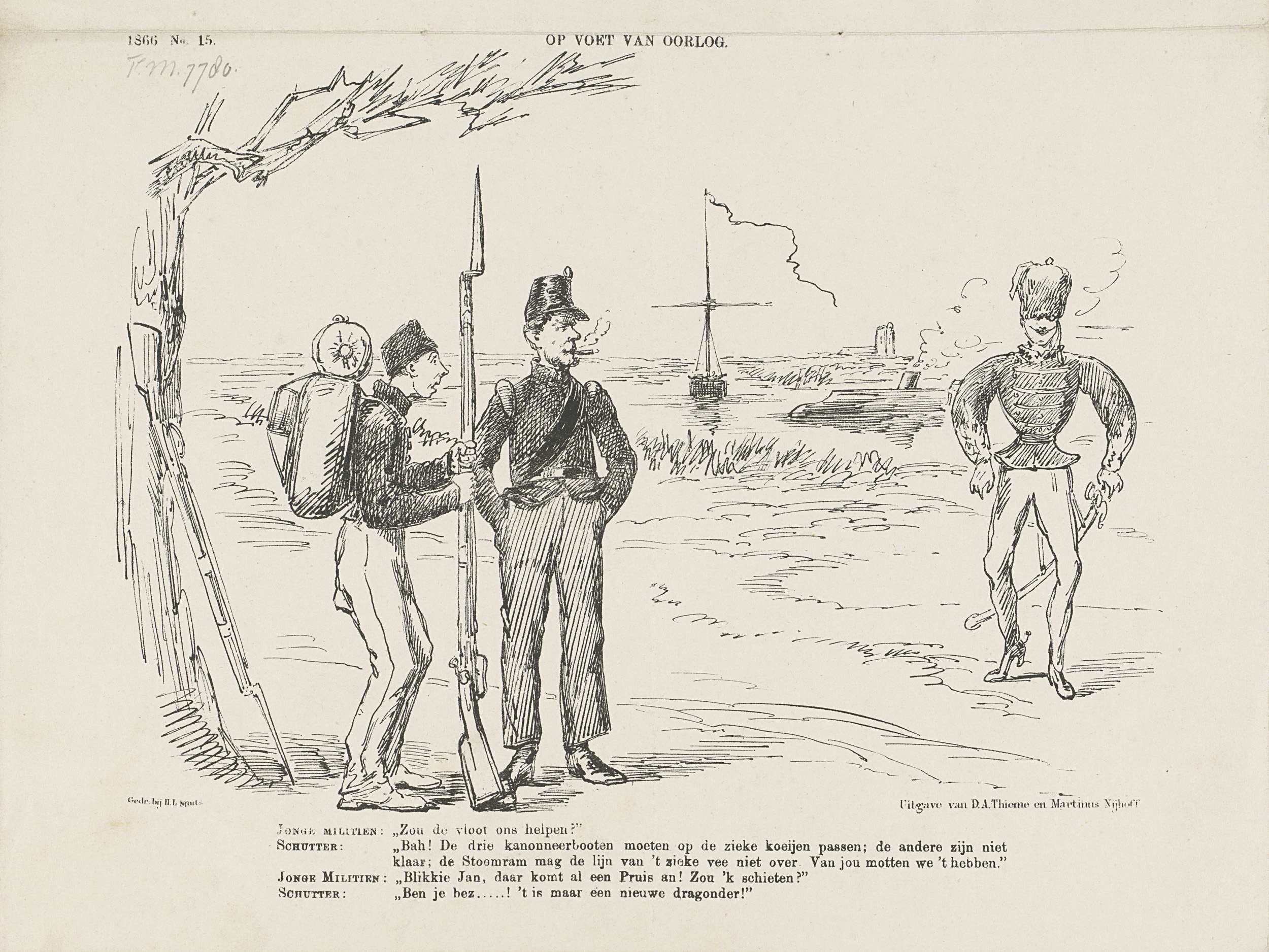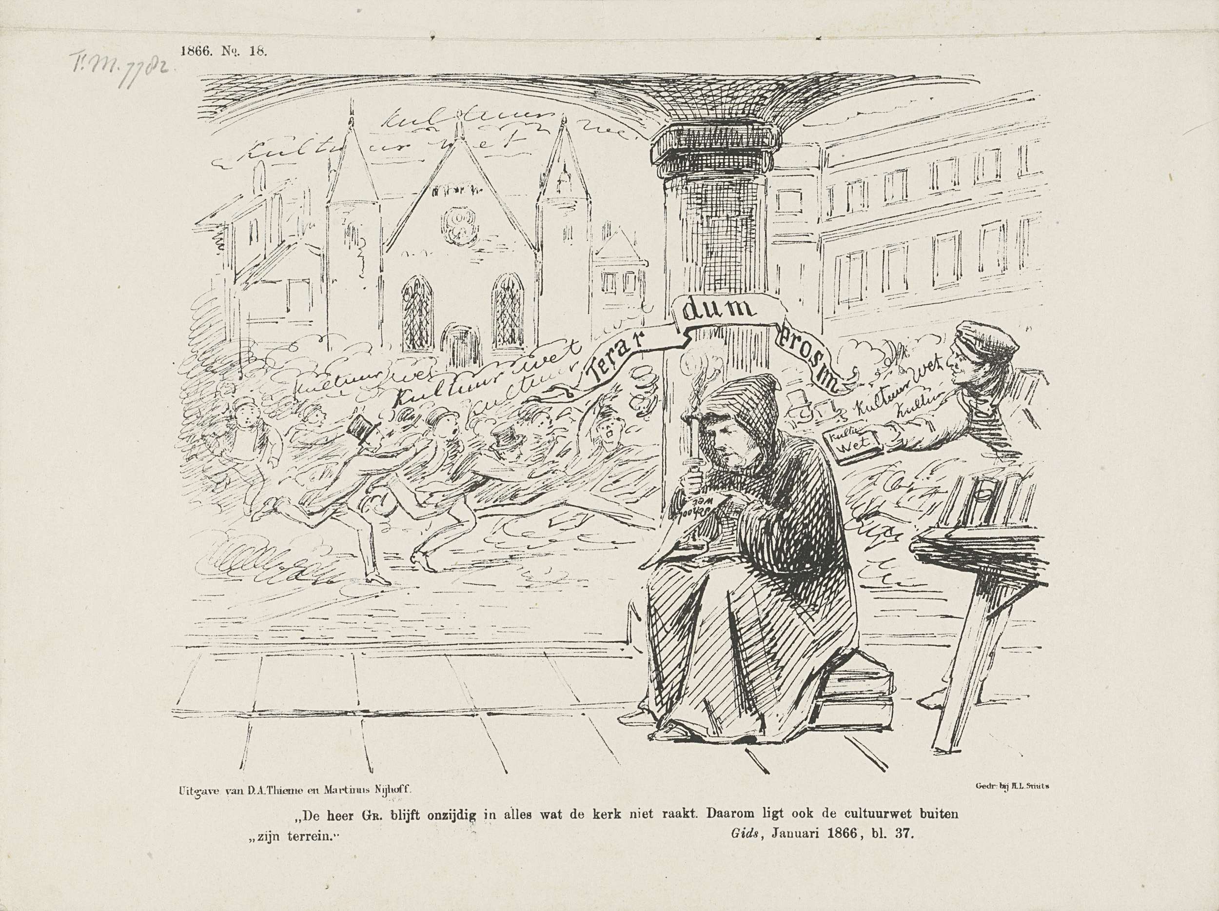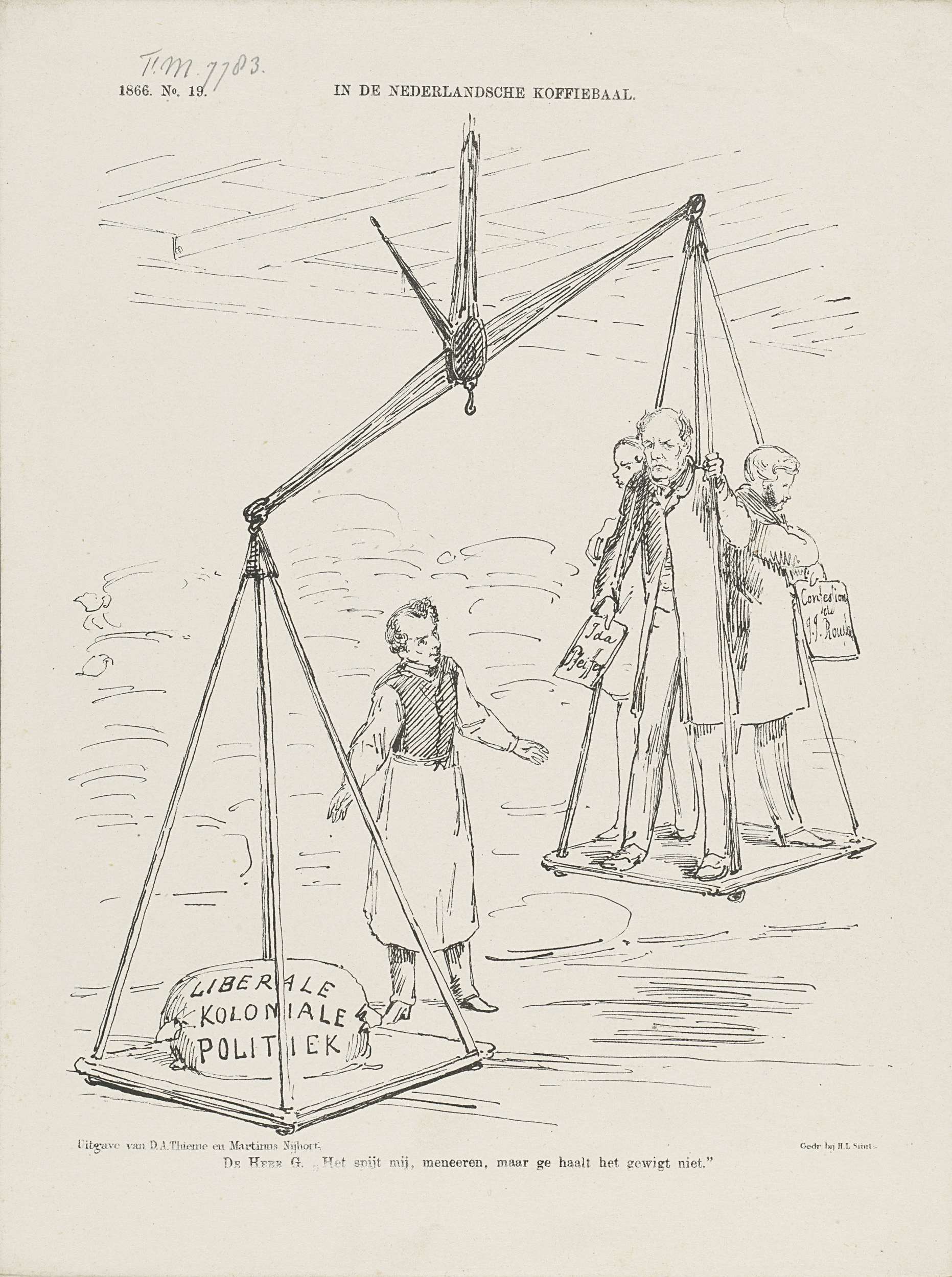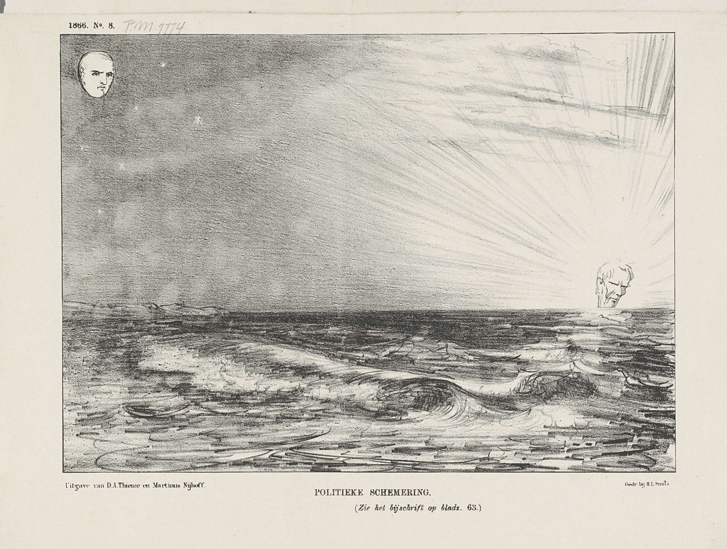 Spotprent op de onenigheid tussen Thorbecke en Frans...