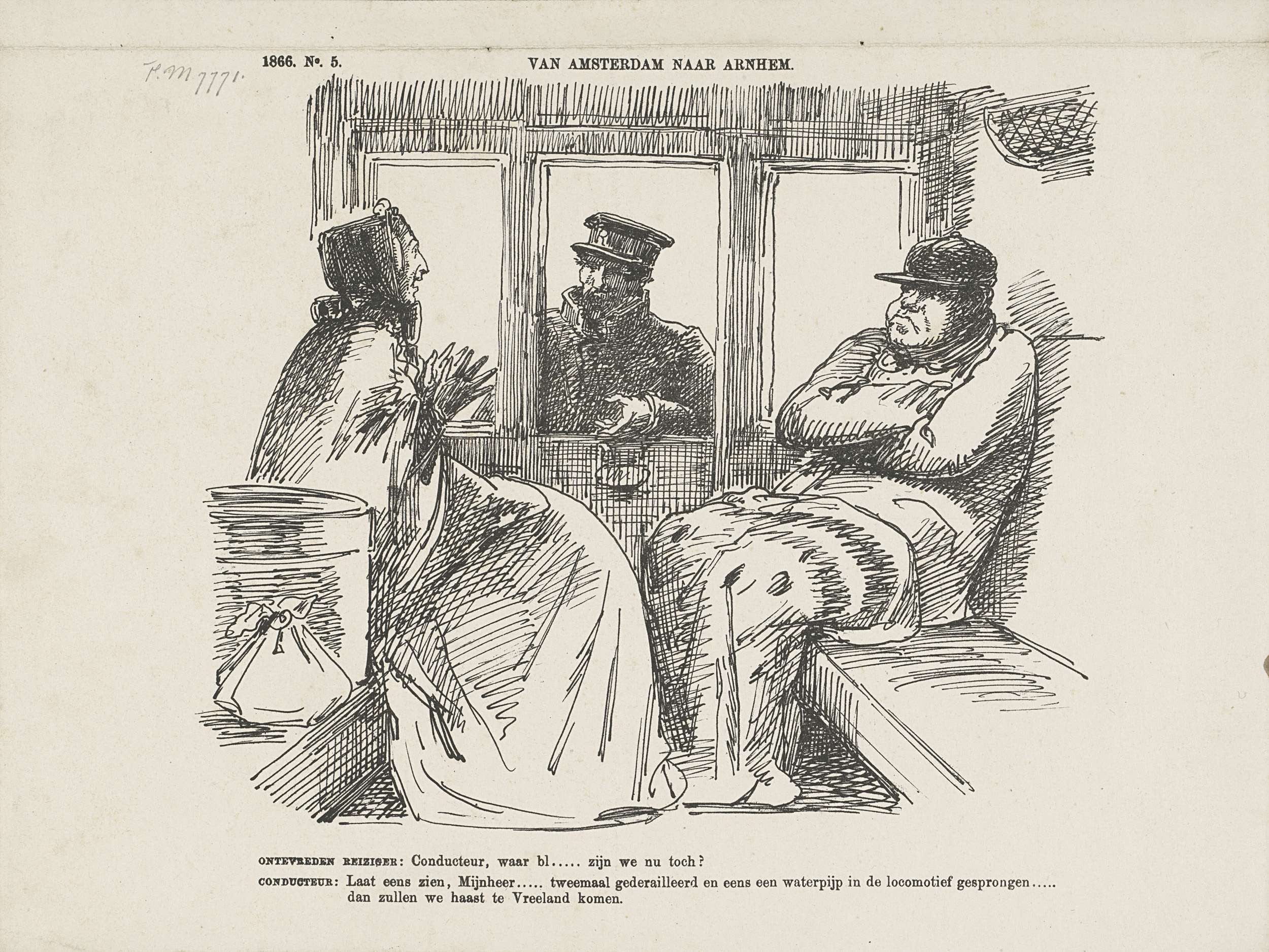 Spotprent op de vele ongelukken op de Rhijnspoorweg,...