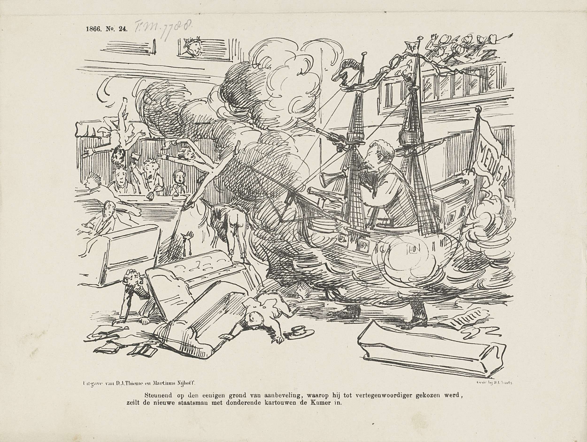 Spotprent op de terugkeer van Thorbecke in de Tweede...