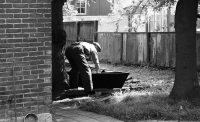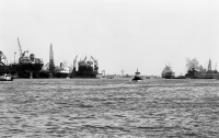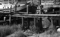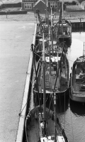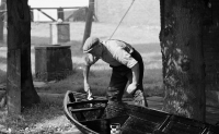 Durgerdam. Onder aan de dijk wordt een boot waterdic...