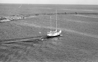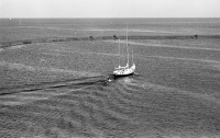 Den Oever. Een jacht op weg naar het wad. Zo stil wa...