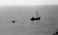 Afsluitdijk. Een visser aan de IJsselmeerzijde.