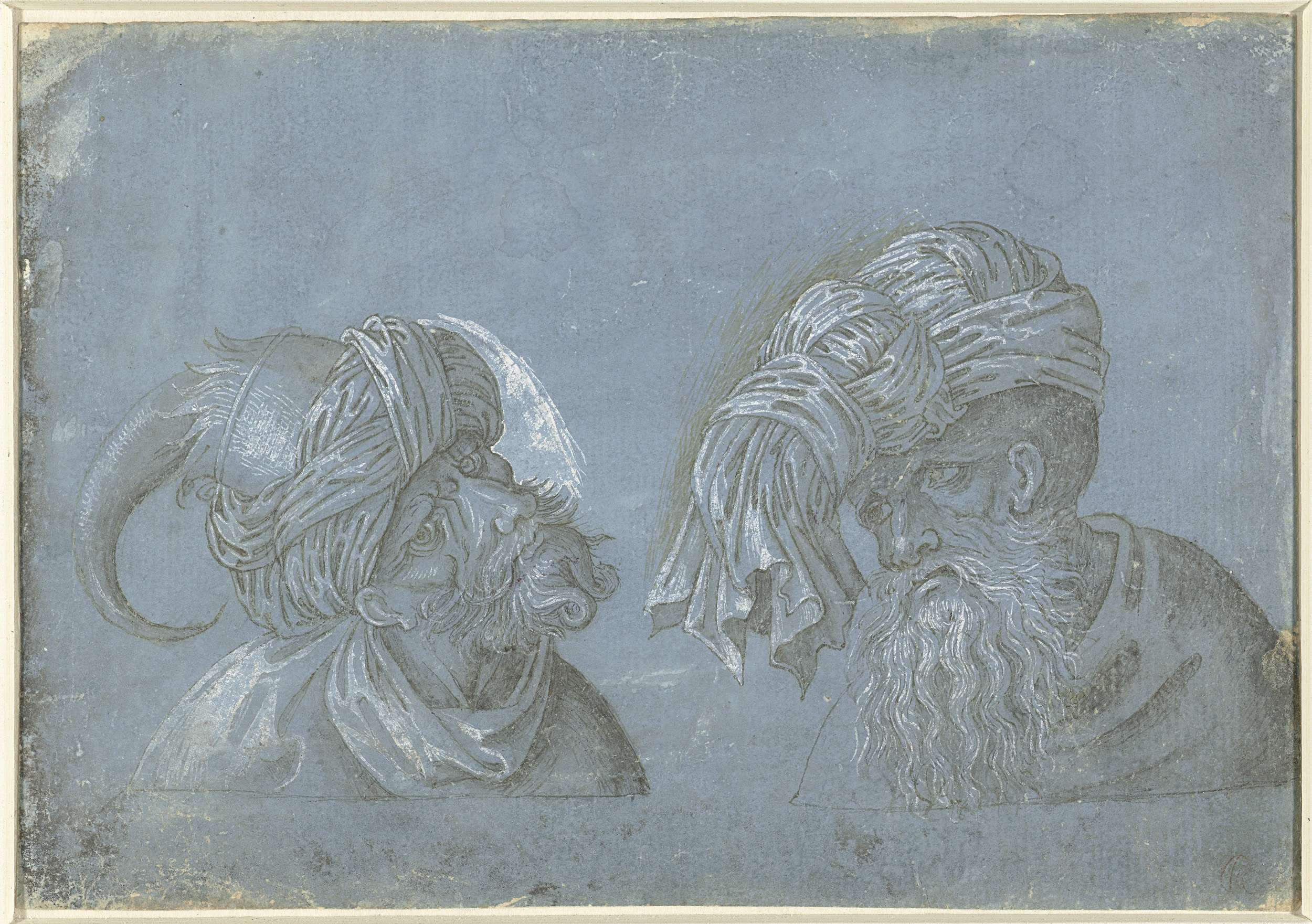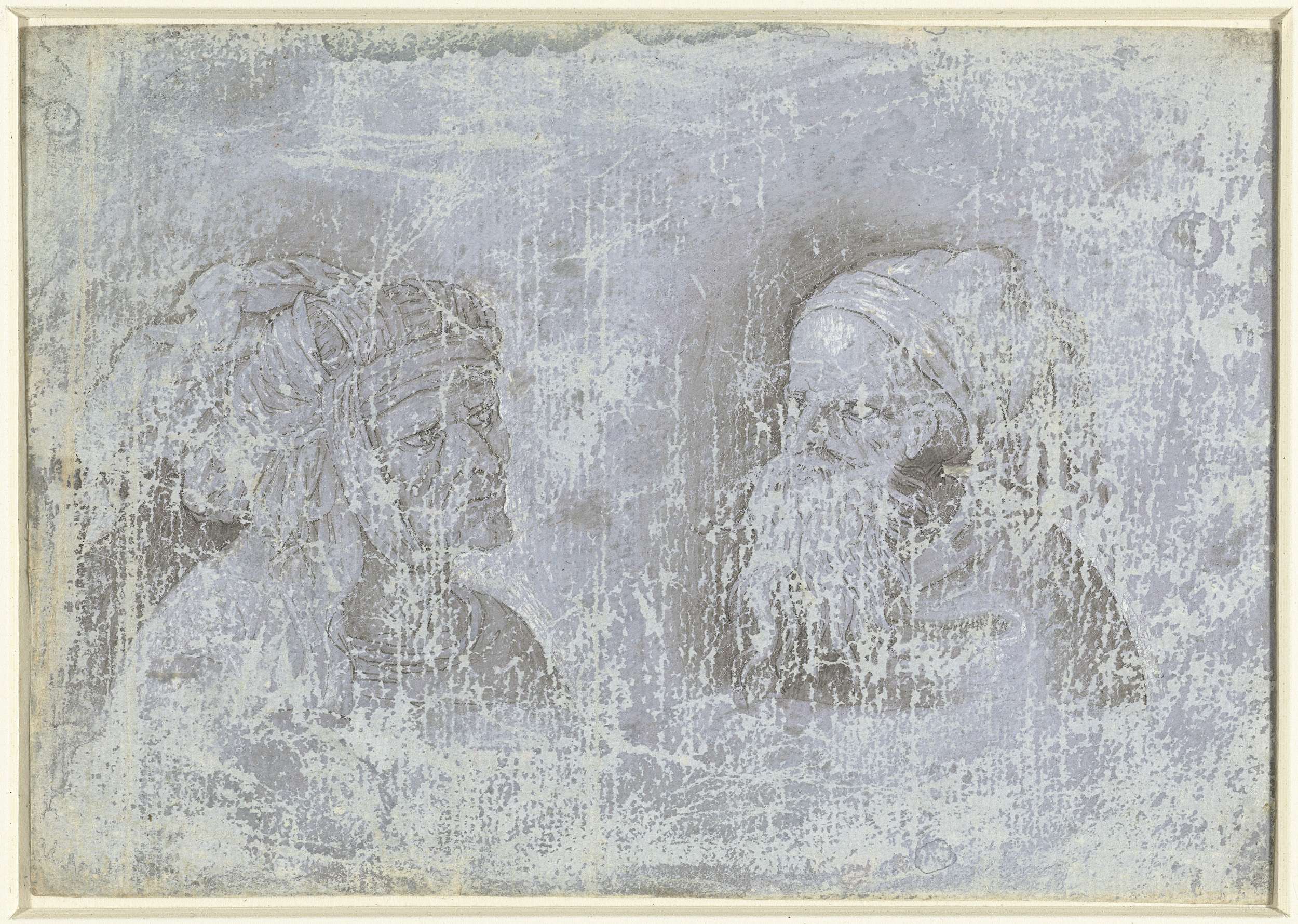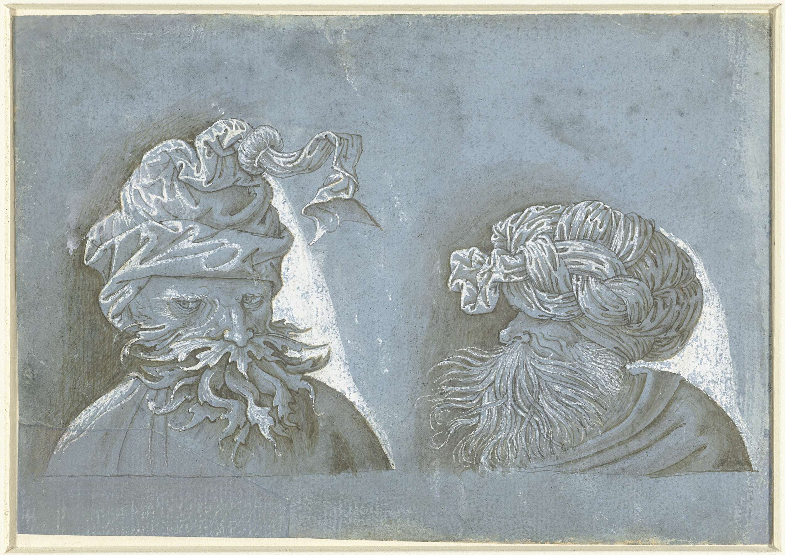 Twee hoofden van mannen met hoofddeksels